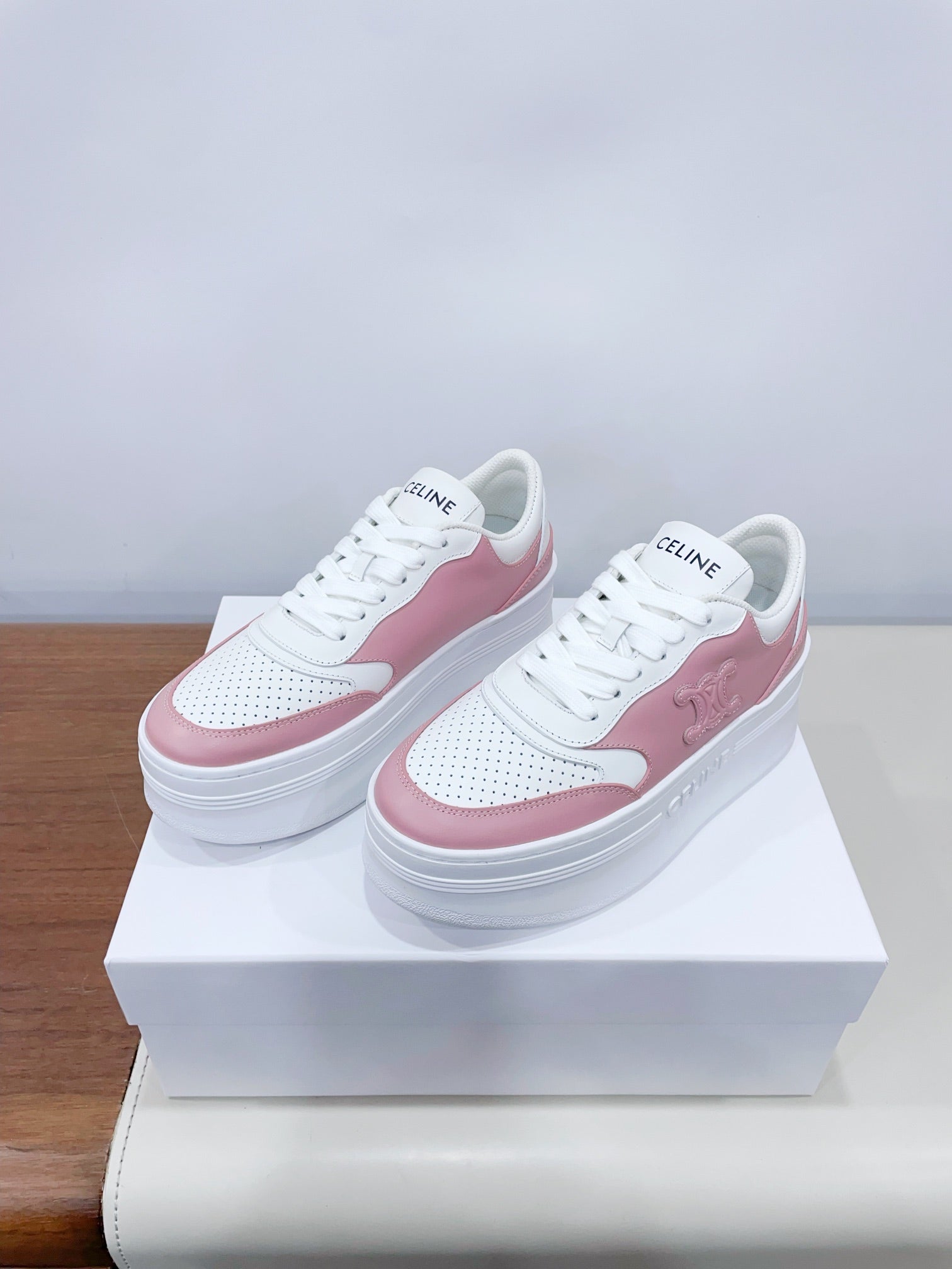 CELINE 25C Block Sneaker Pink mix White Calfskin 232000