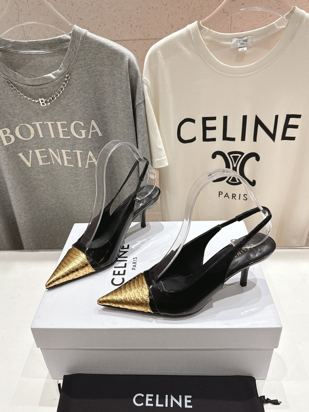 Celine 25C Slingback Pump Black mix Gold Sheepskin 236771