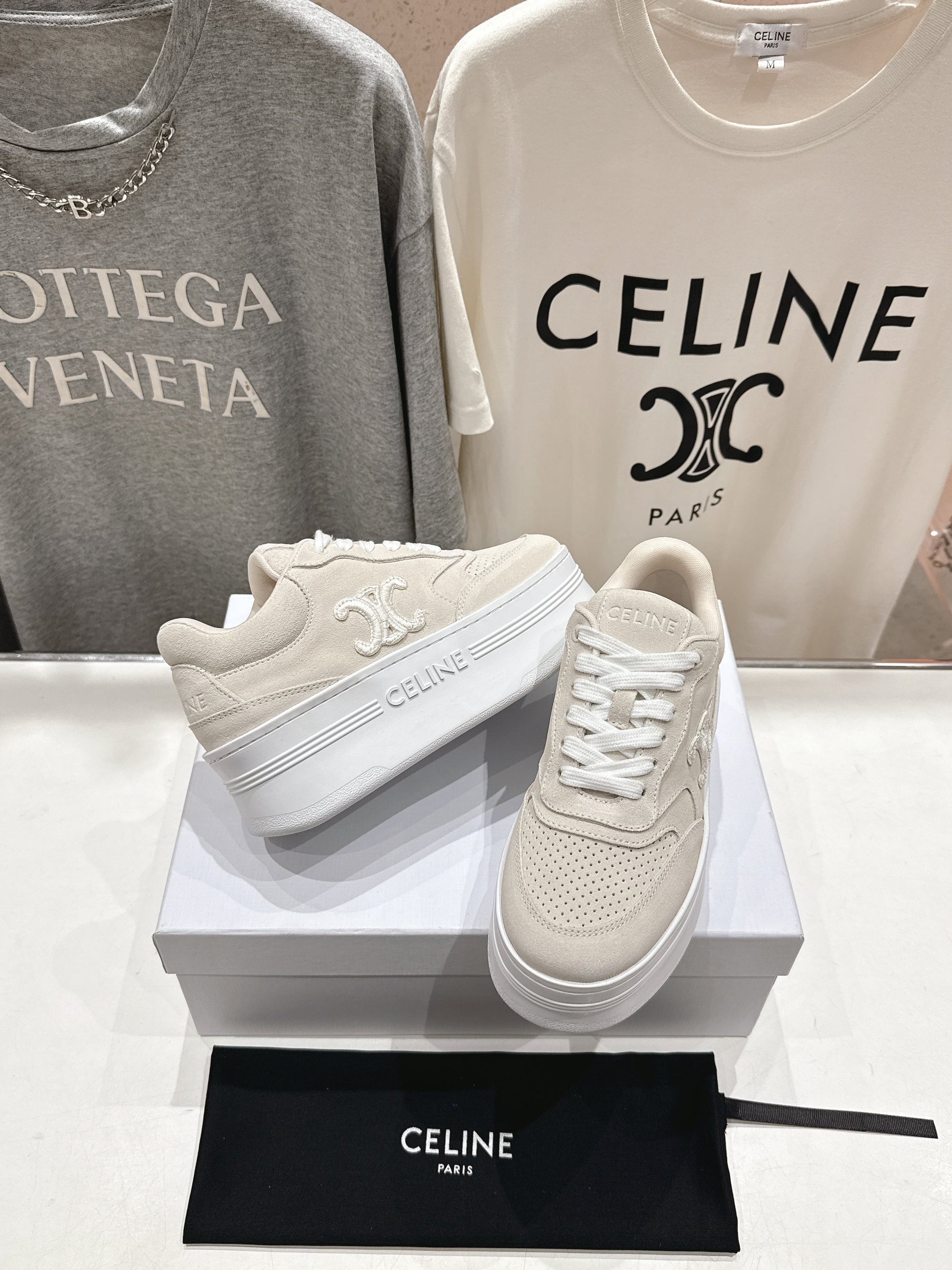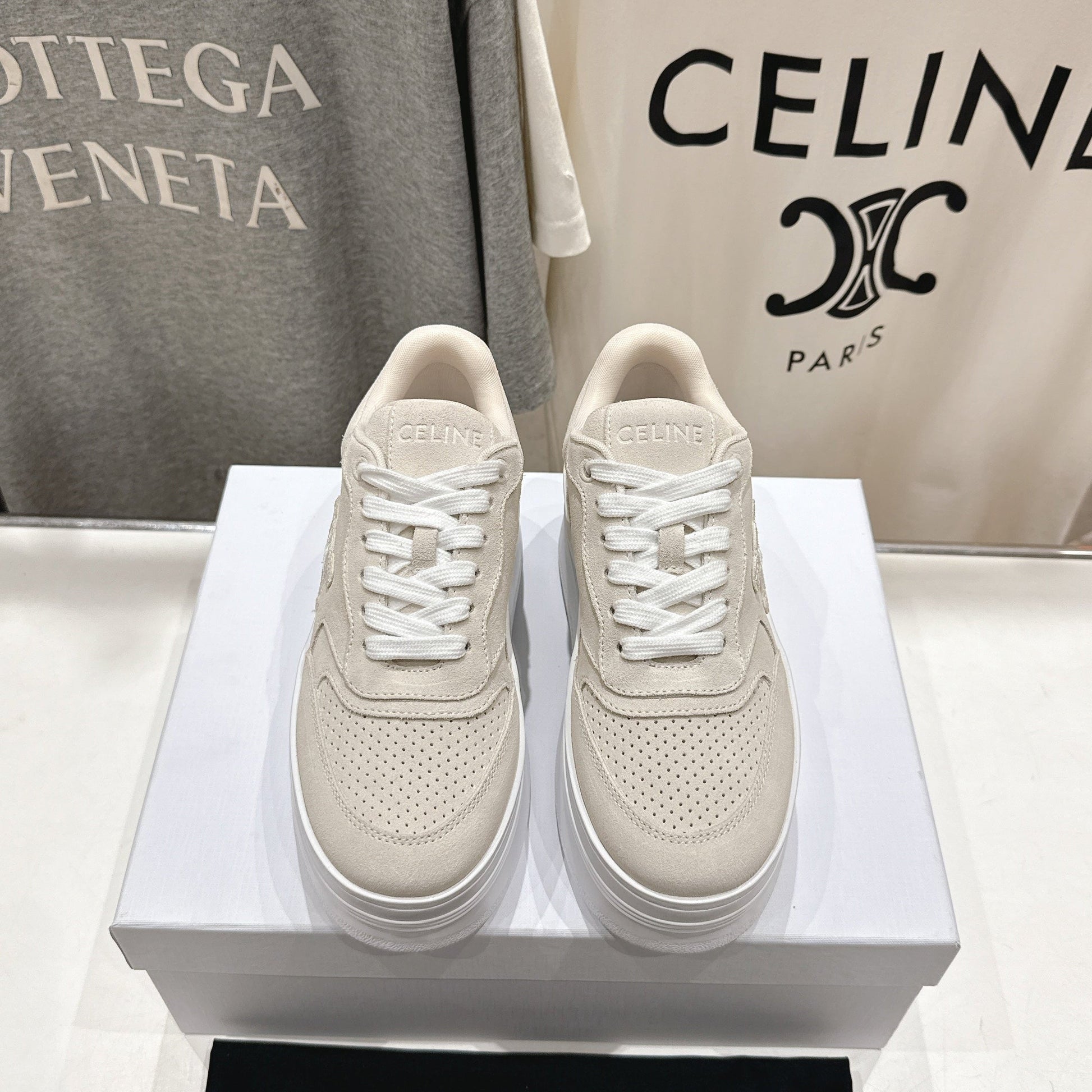 CELINE 25C SNEAKERS WITH WEDGE BEIGE SUEDE 236766
