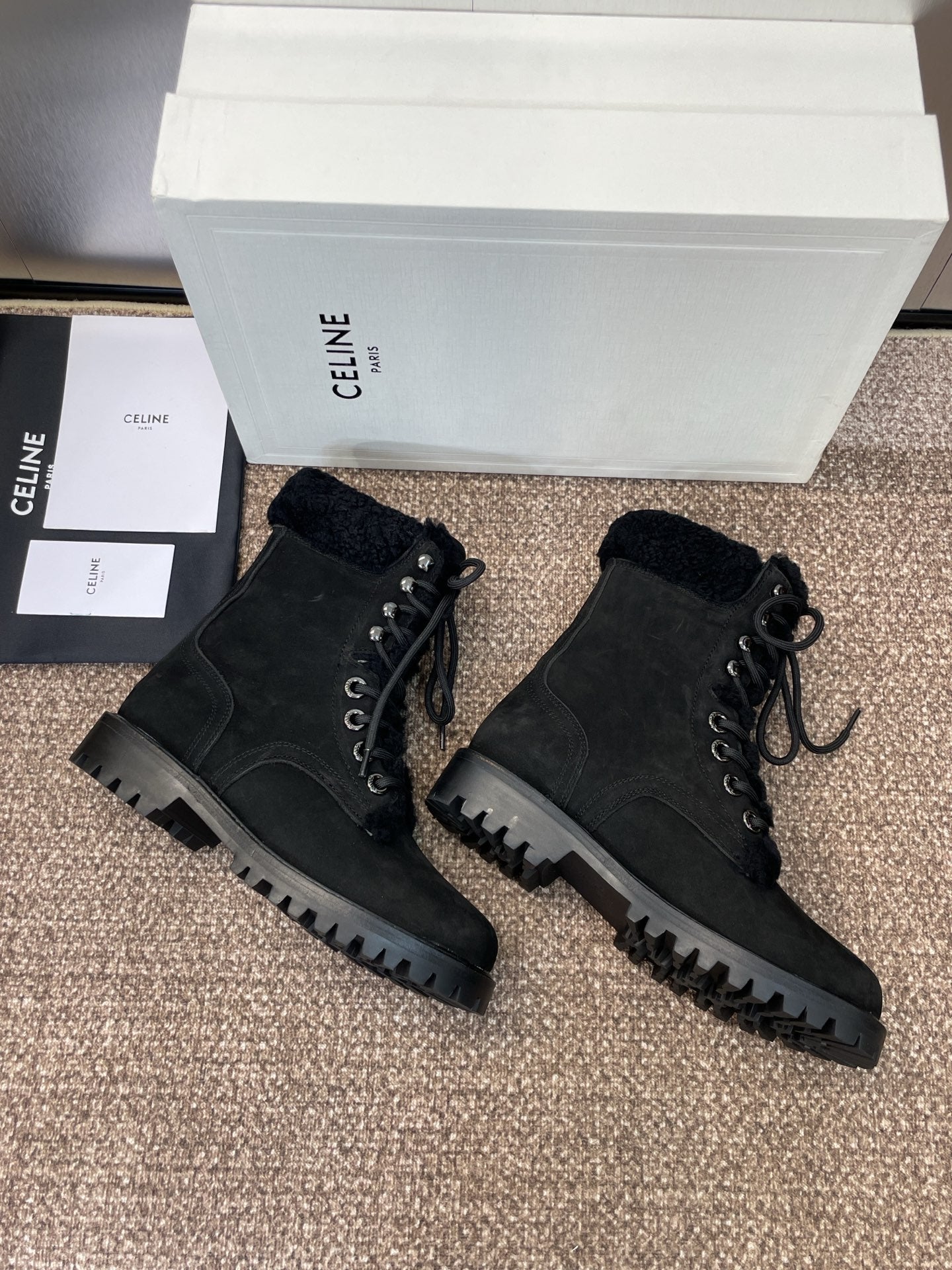 CELINE Ankle Boots Black Suede Lambswool 433387