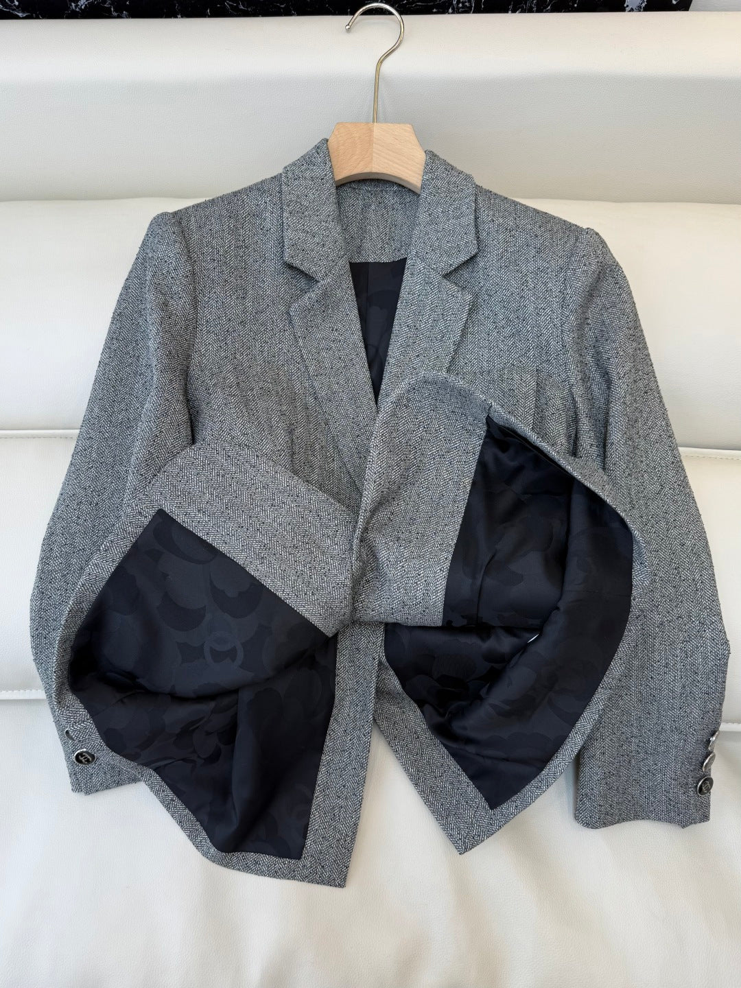 Chanel 2025 Blazer With Belt Gray Black Polyester Wool