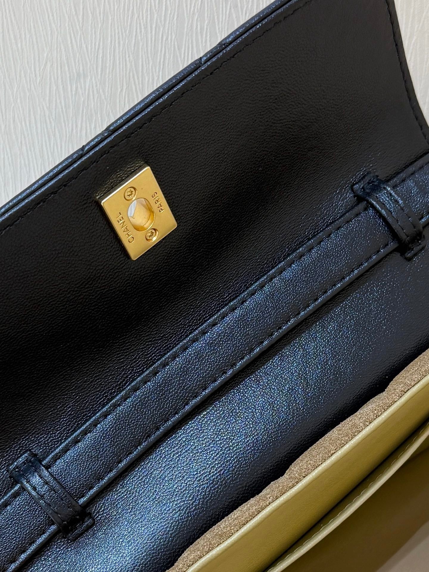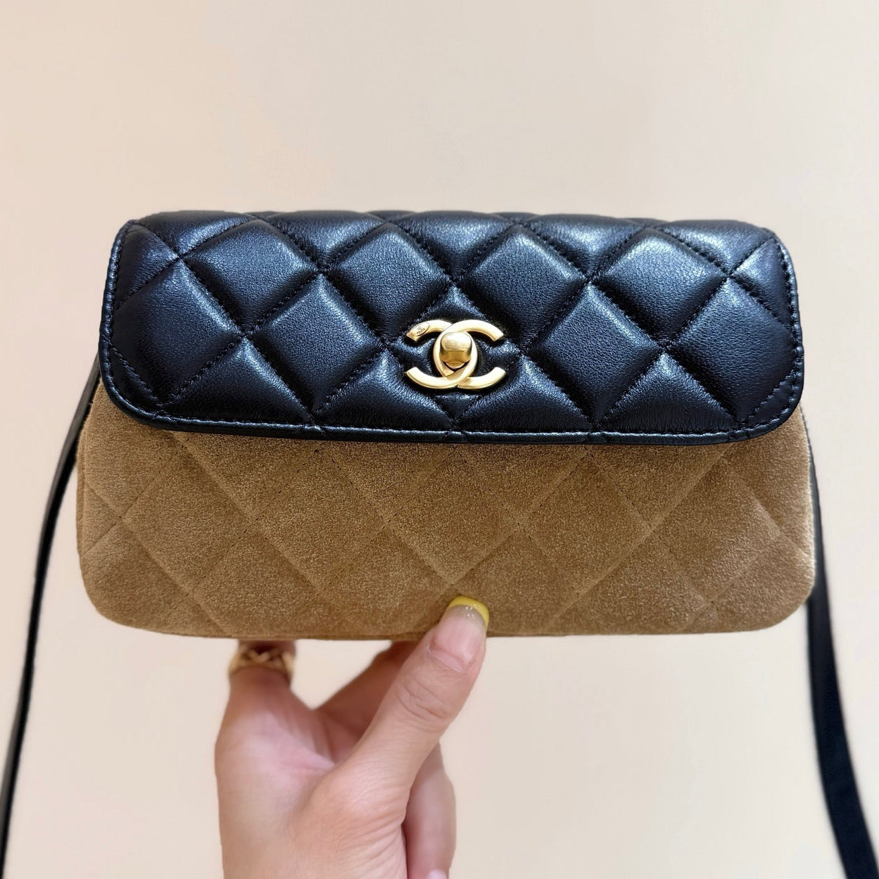 Chanel 2025 Block Flap Bag 20cm Black Beige Lambskin Suede 343043