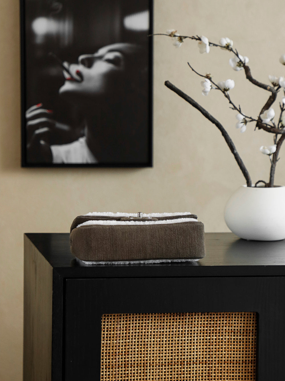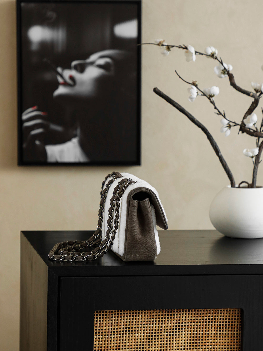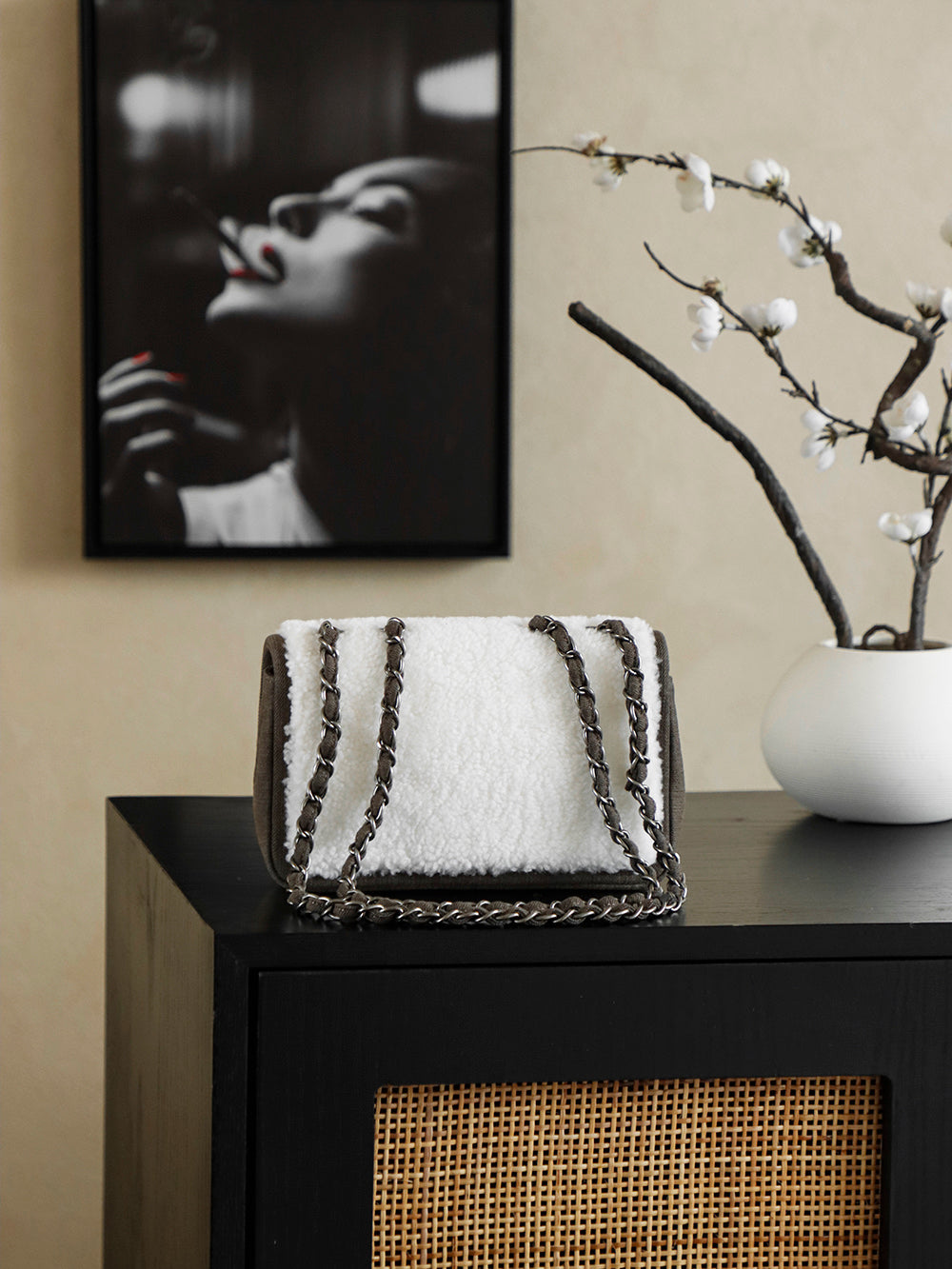 Chanel 2025 Dallas Shearling Star Bag 21cm White Dark Wool Denim 318221