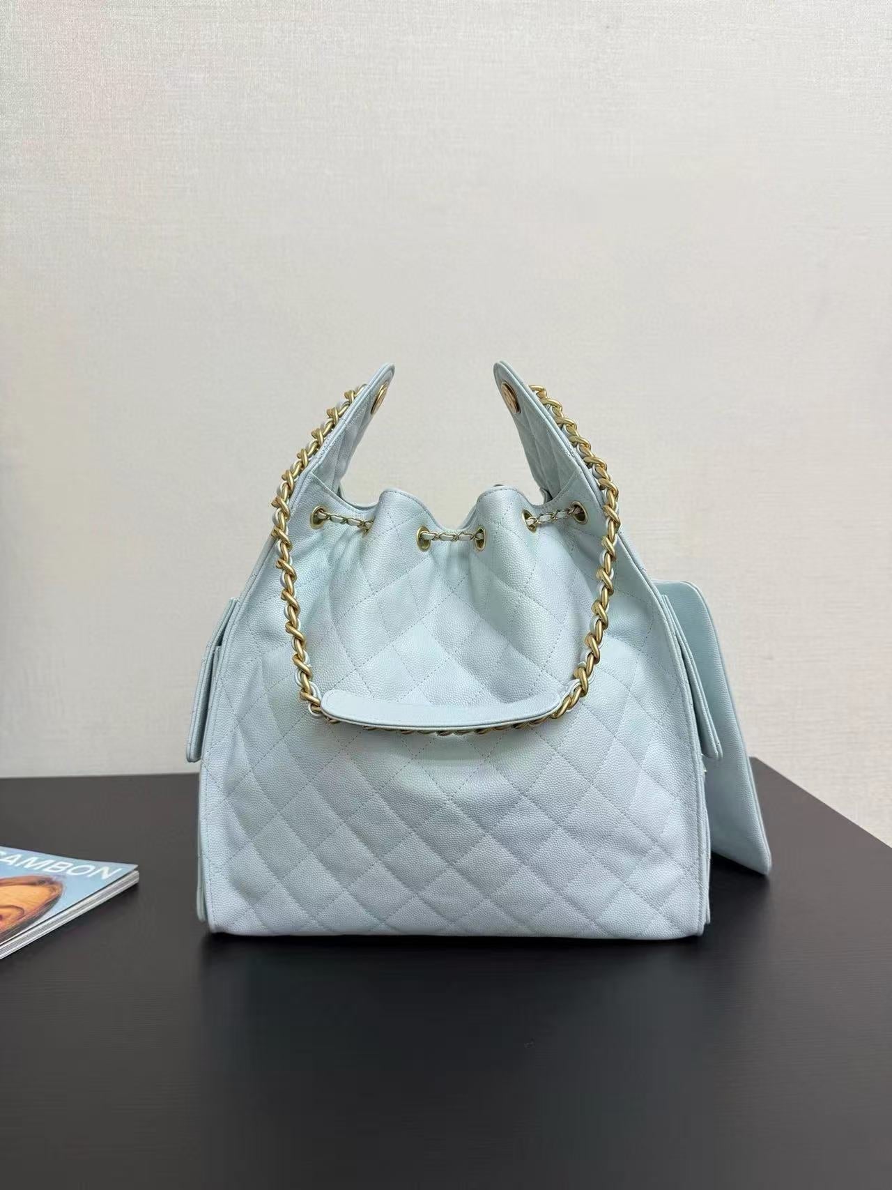 Chanel 2025 Hobo Bag 40cm Light Blue Grained Calfskin