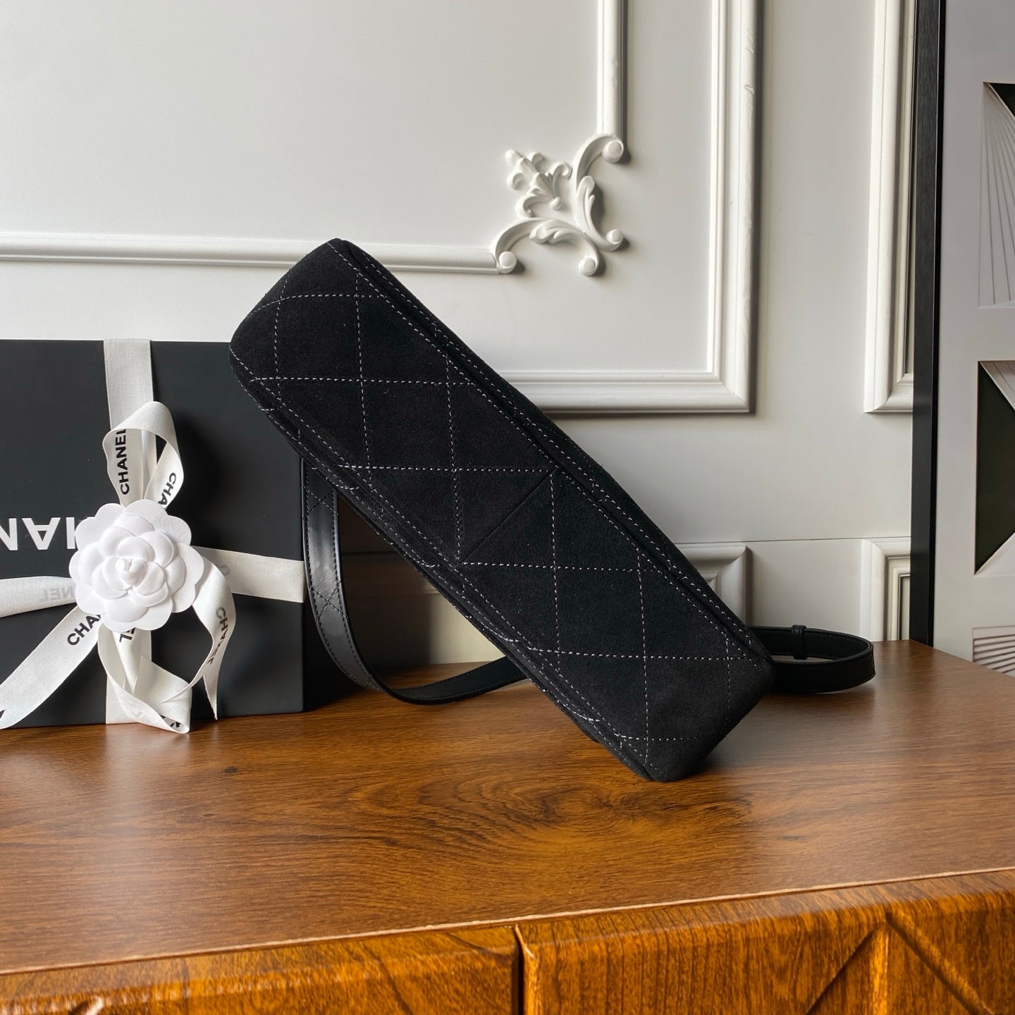 Chanel 2025 Messenger Bag 30cm Black Suede Gold Hardware 321012