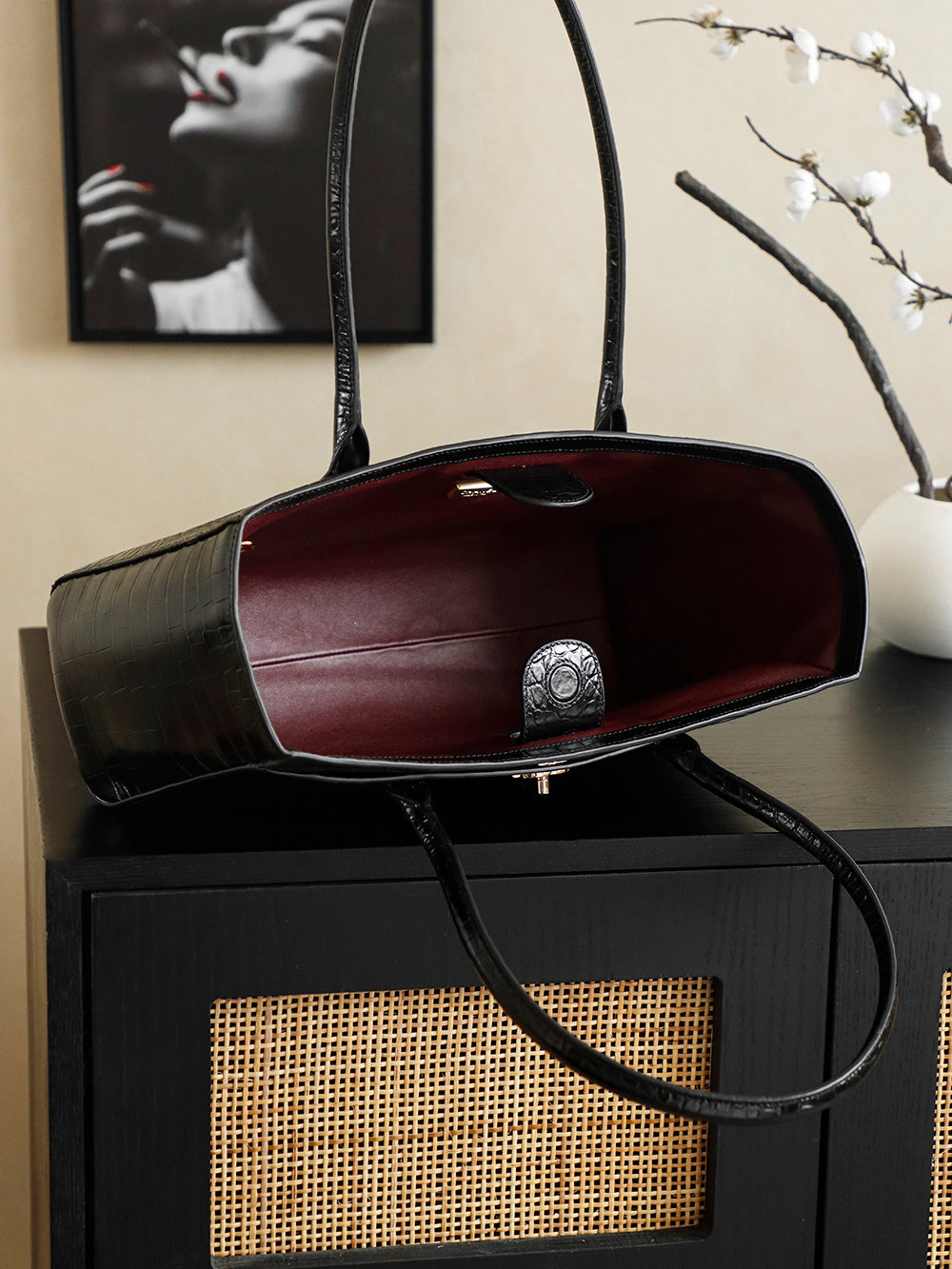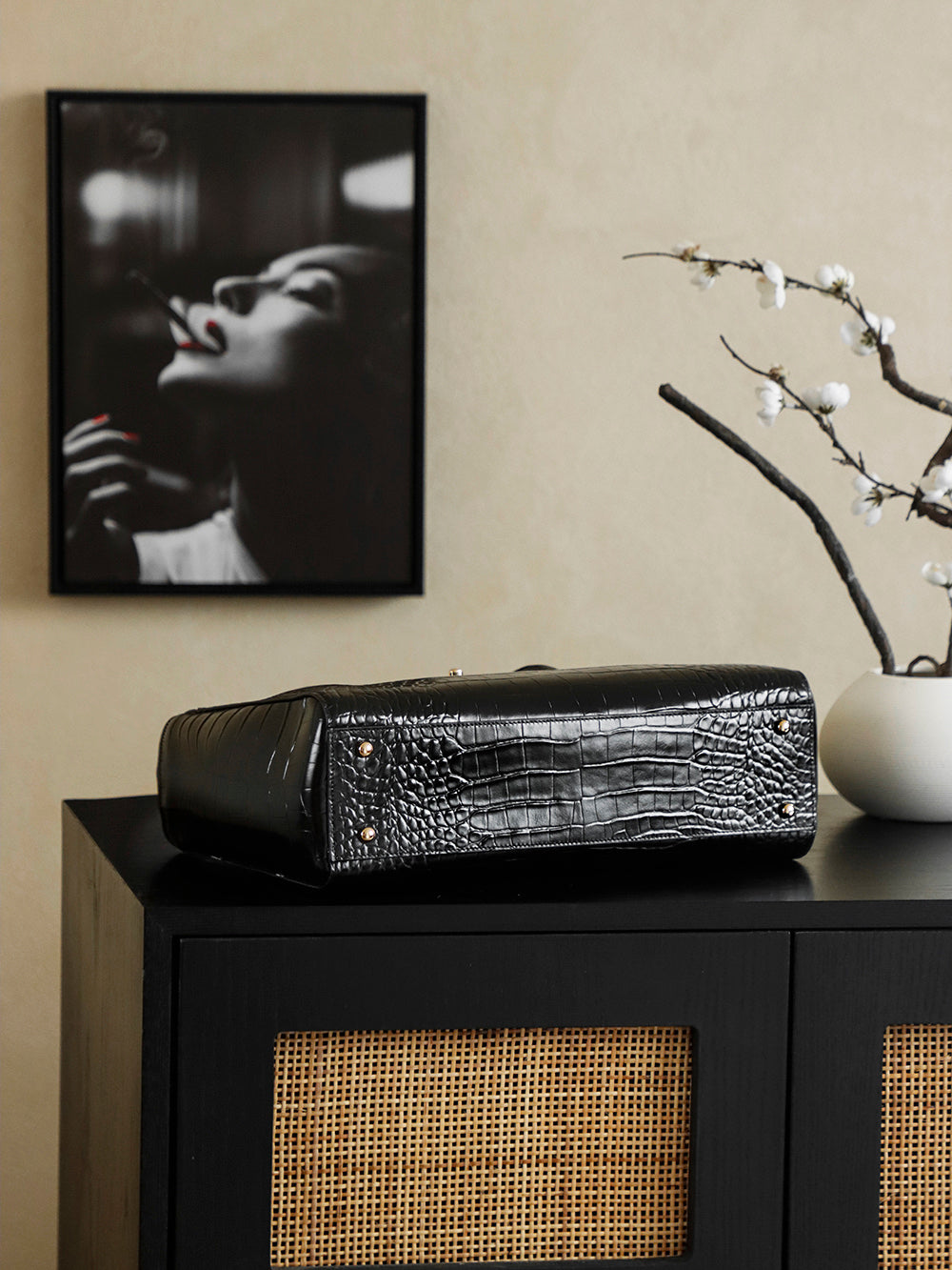 Chanel 25 Crocodile-embossed 40cm Bag Black Cowhide 322959