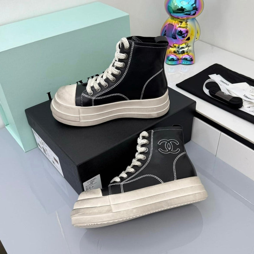Chanel 25 High Sneaker Black White Cowhide 469782