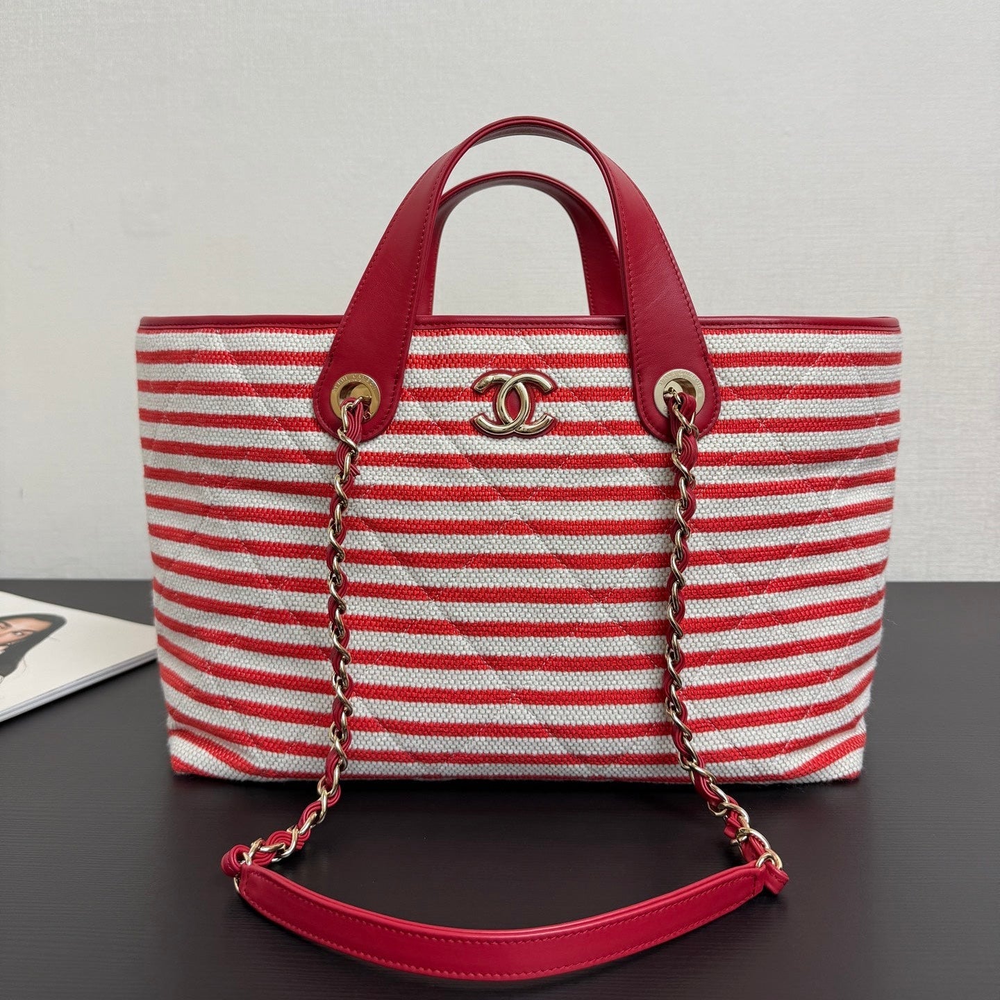 Chanel 26 Woven Beach Bag 46 White Red Canvas Leather