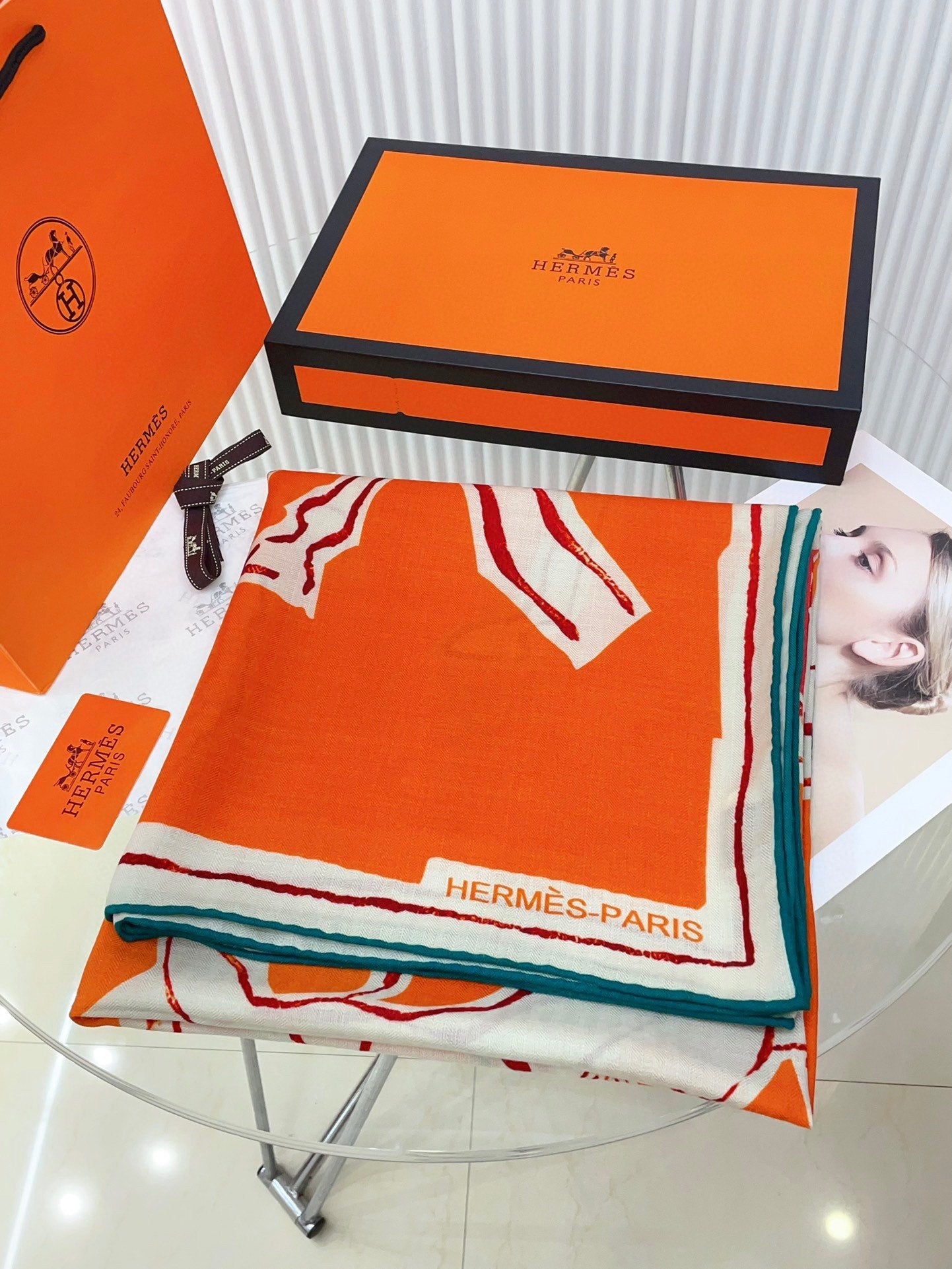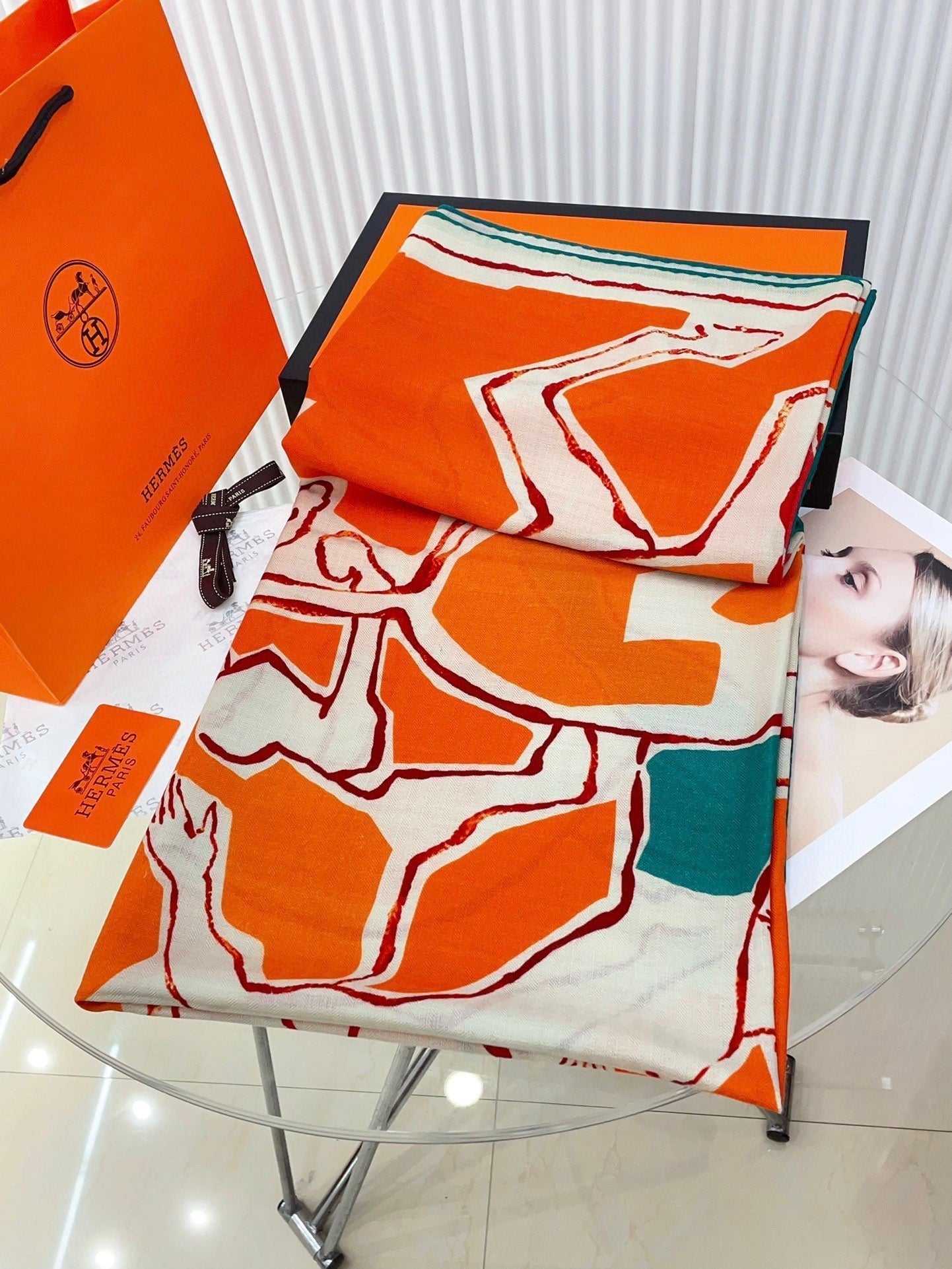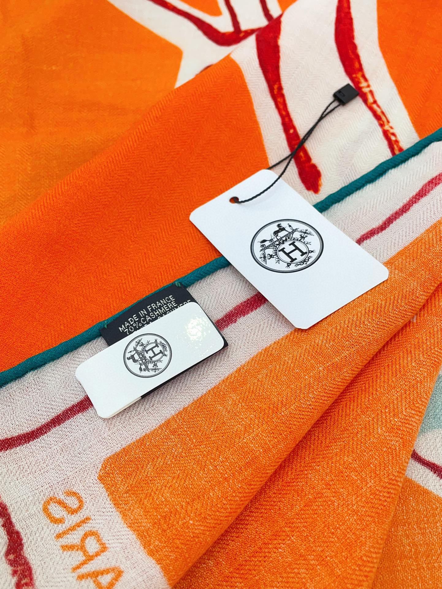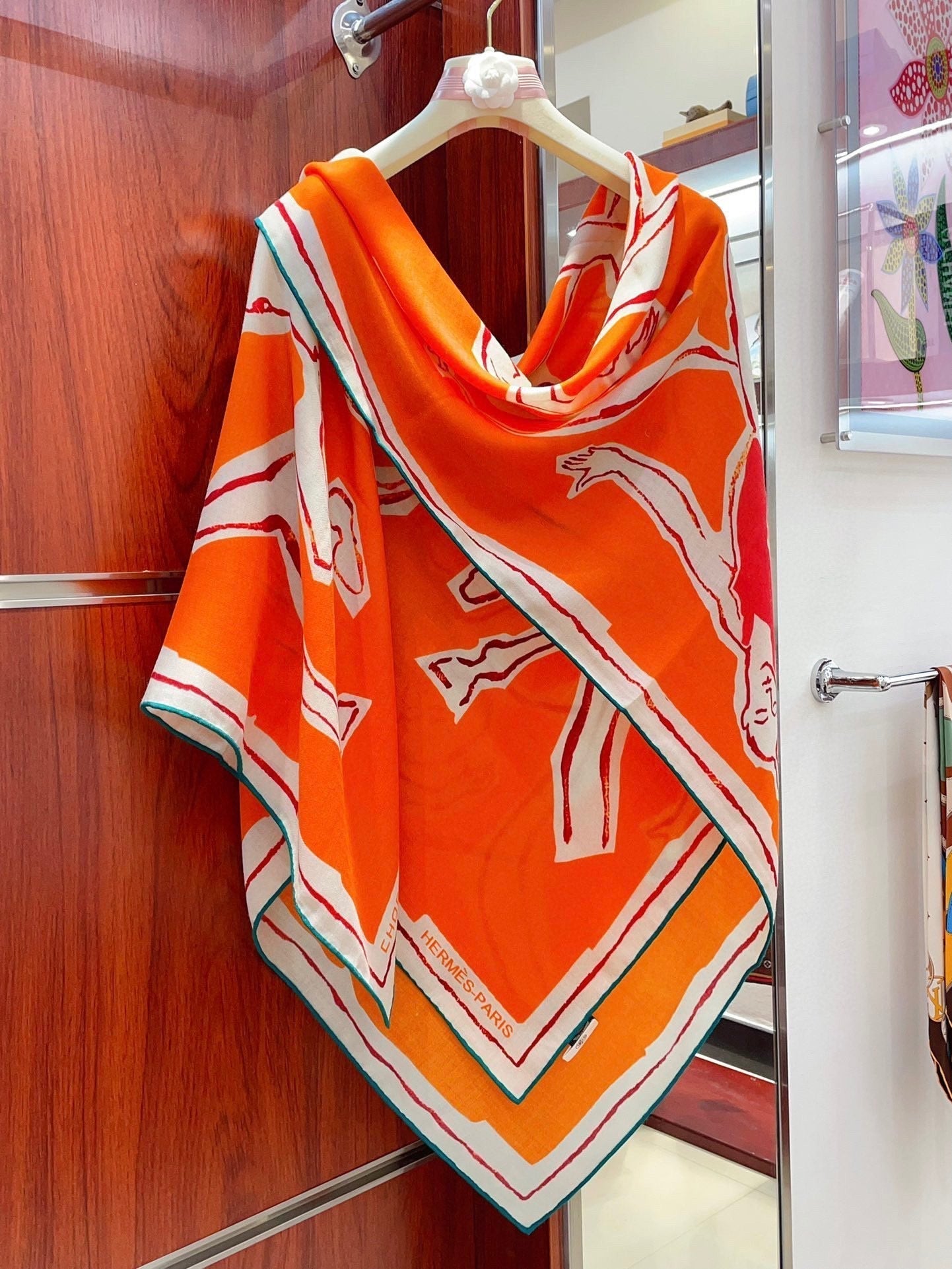 Choregraphie Equestre Pareo Scarf 140 CM Orange Colorful Cashmere And Silk 393170