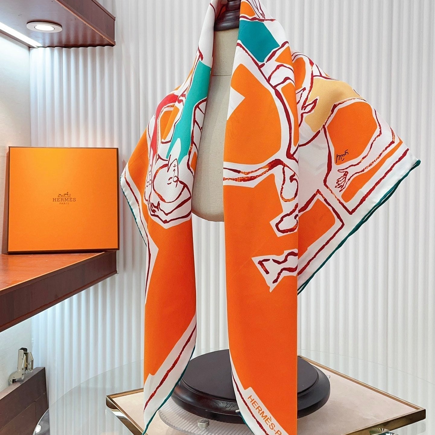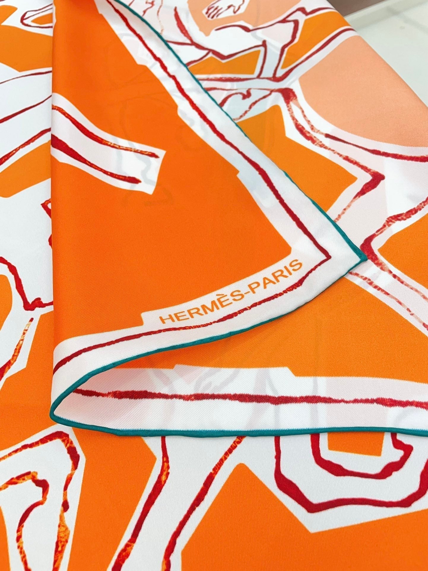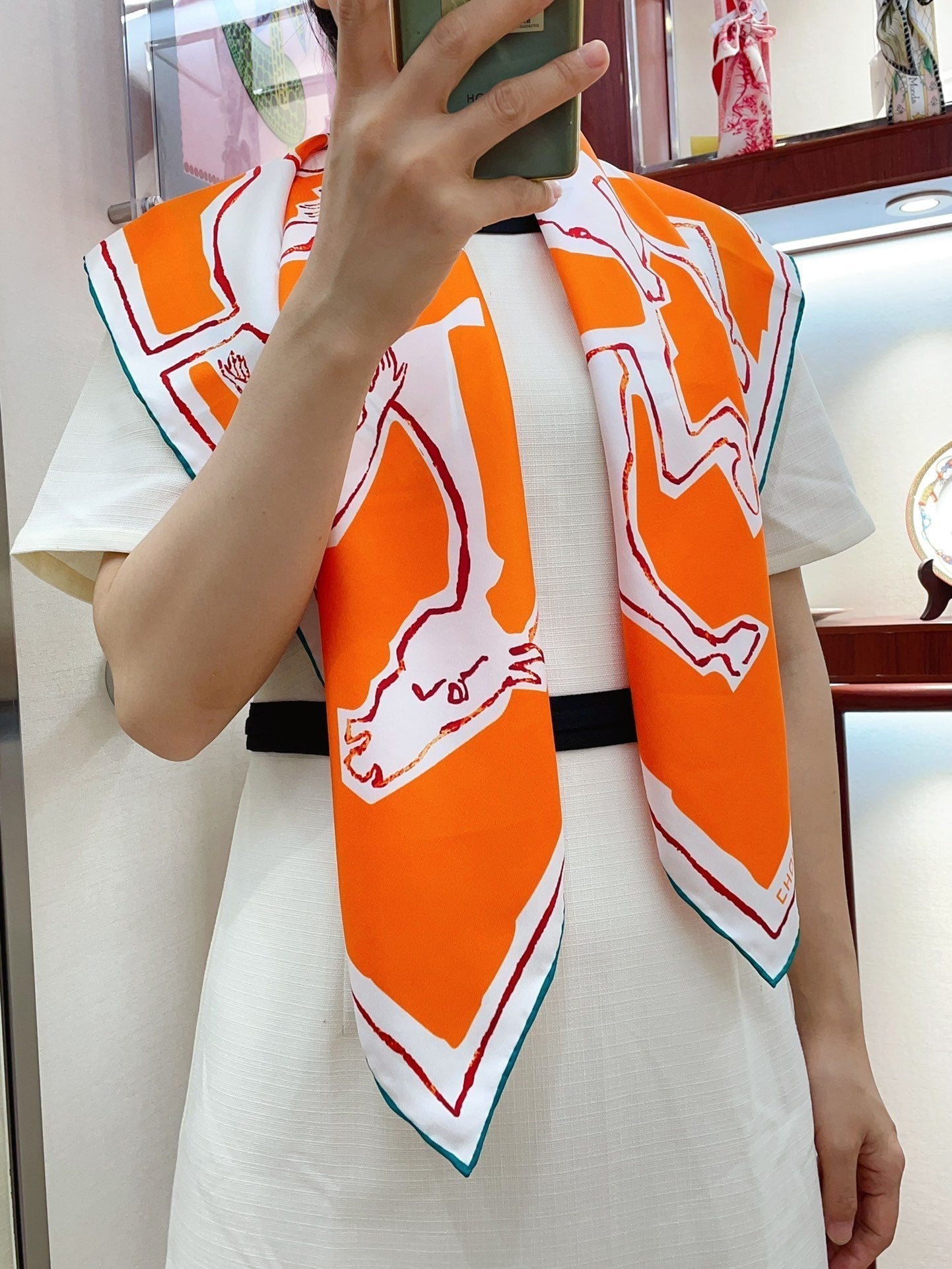 Choregraphie Equestre Scarf 90 CM In Orange Colorful Silk Twill 228977
