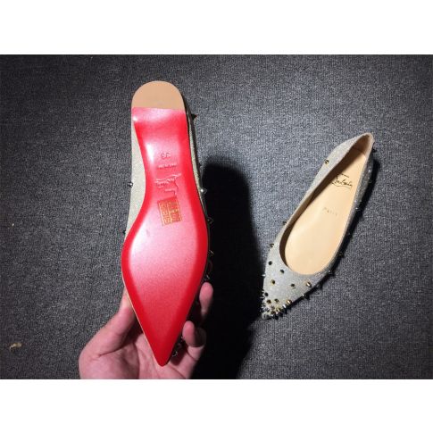 CL Degraspike Ballet Flats Glitter Fabric Silver