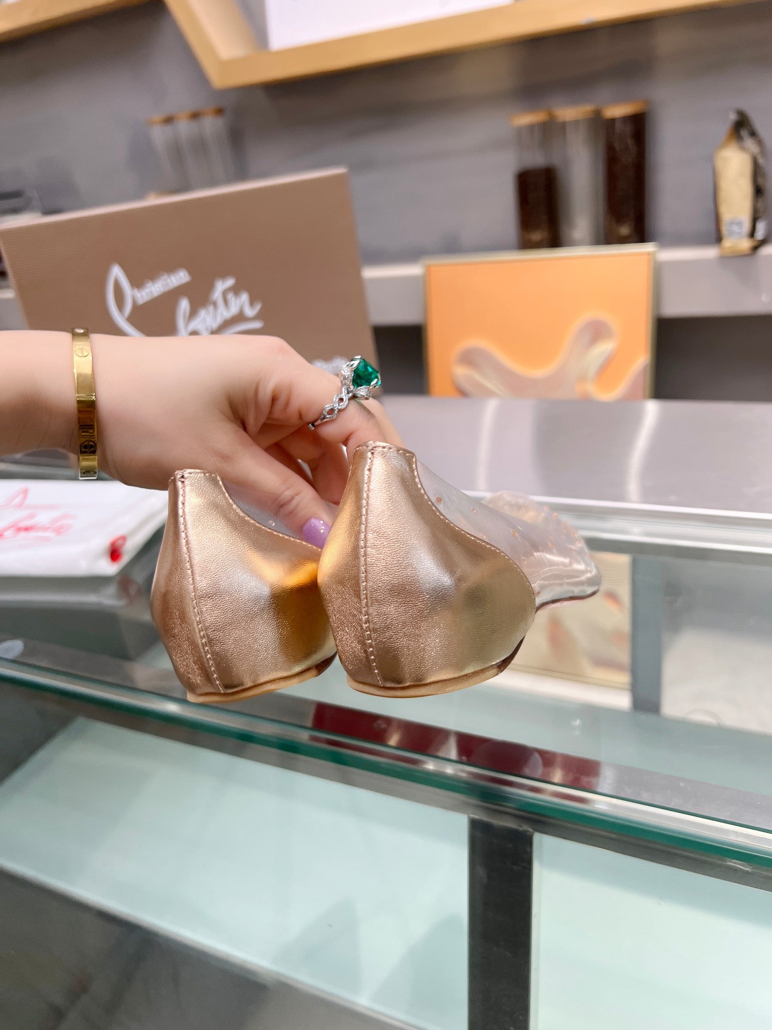 CL Degrastrass Flats Silver PVC and Strass Light Peach