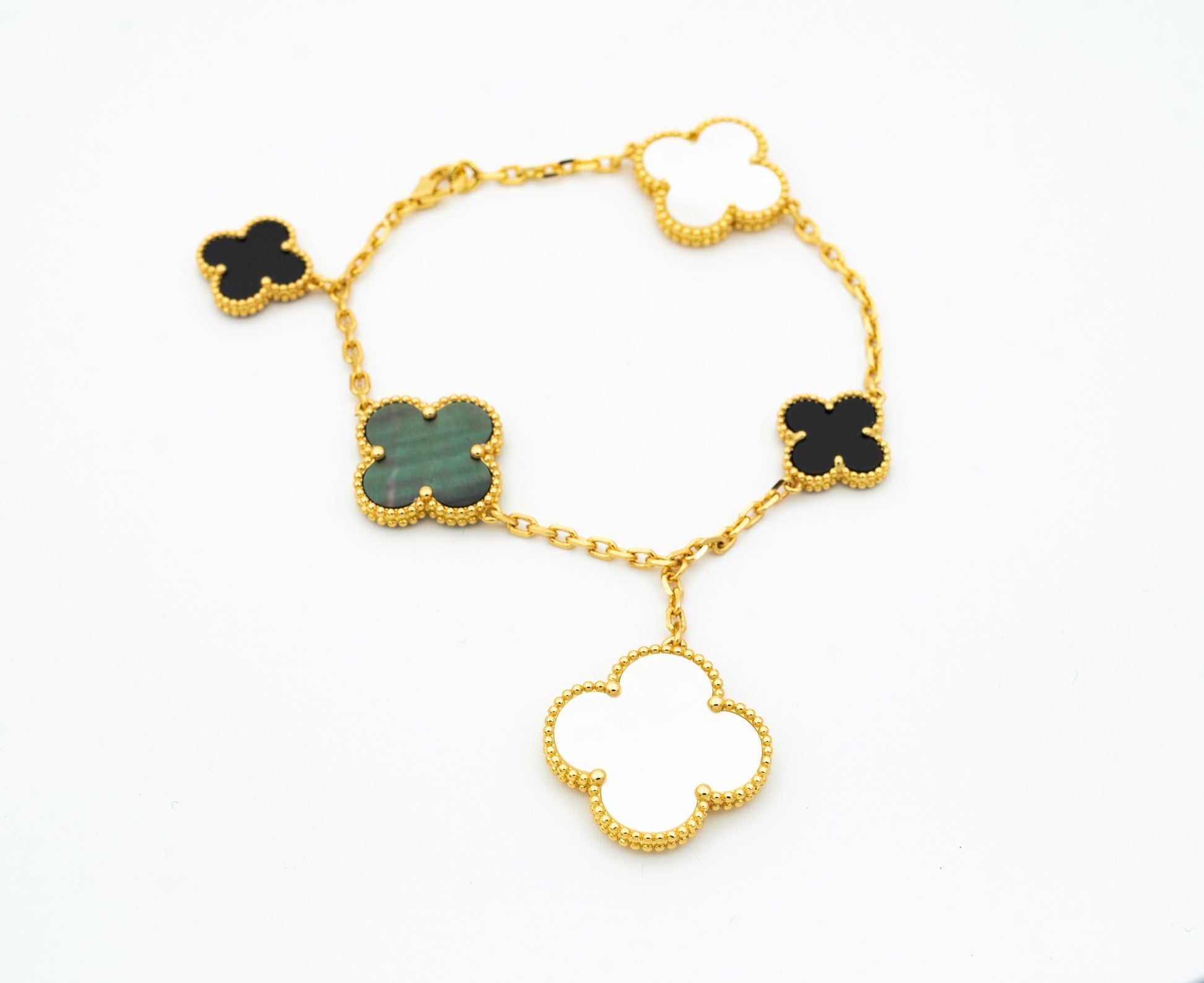 CLOVER BRACELET 5 MOTIFS SILVER MOP ONYX