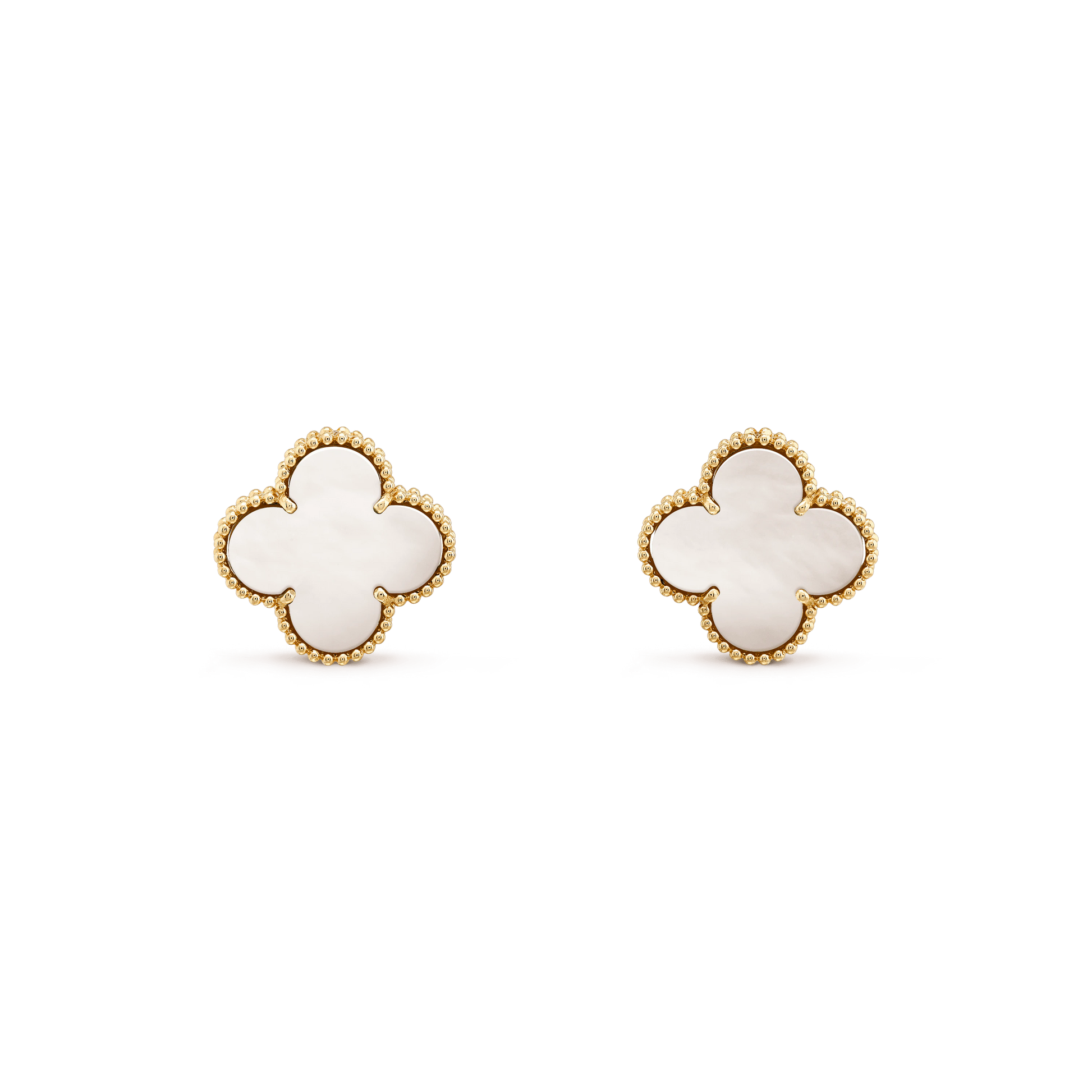 CLOVER MEDIUM WHITE MOP PINK GODL EARRINGS