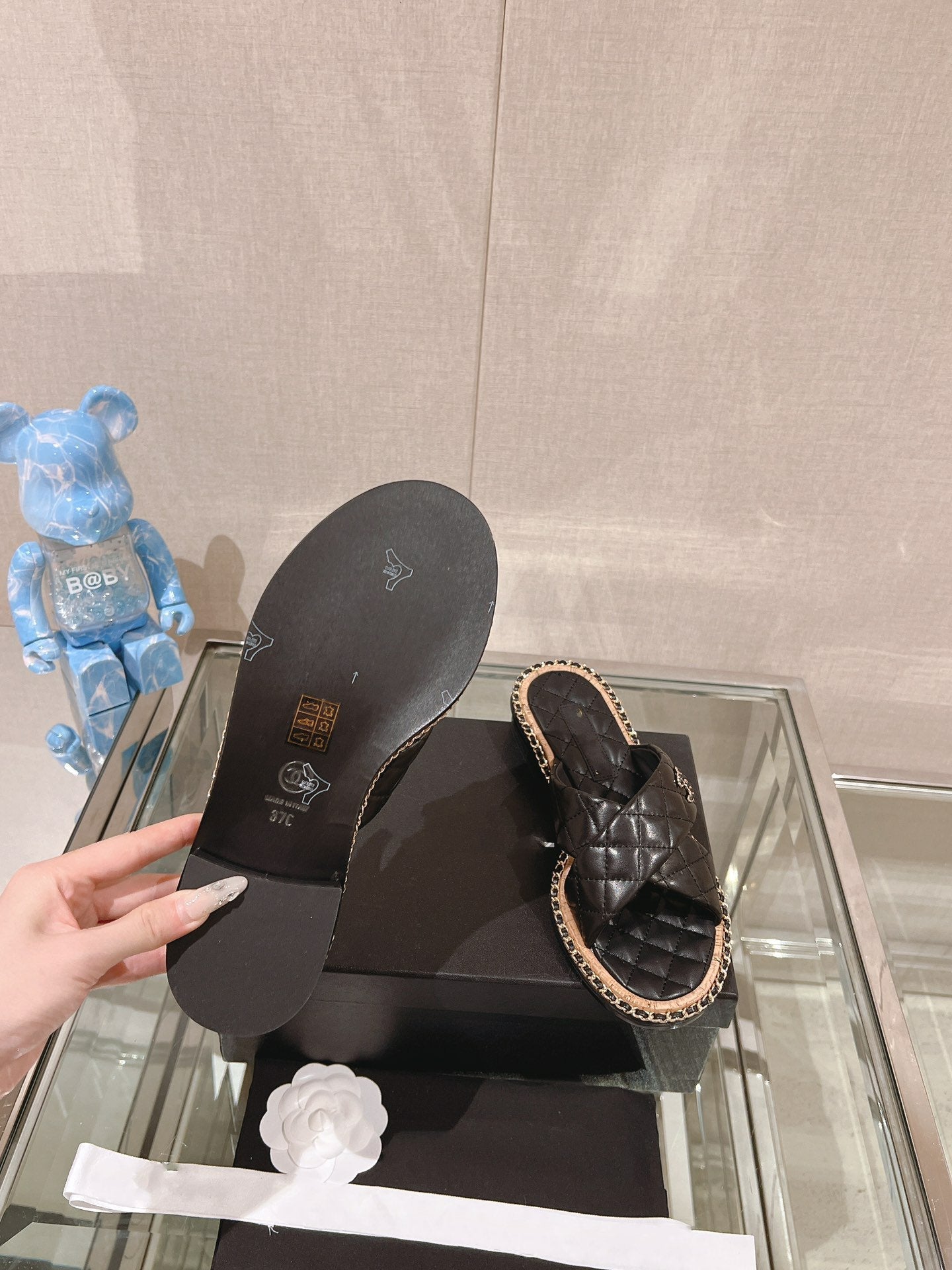 cross slipper 30 black quilted lambskin