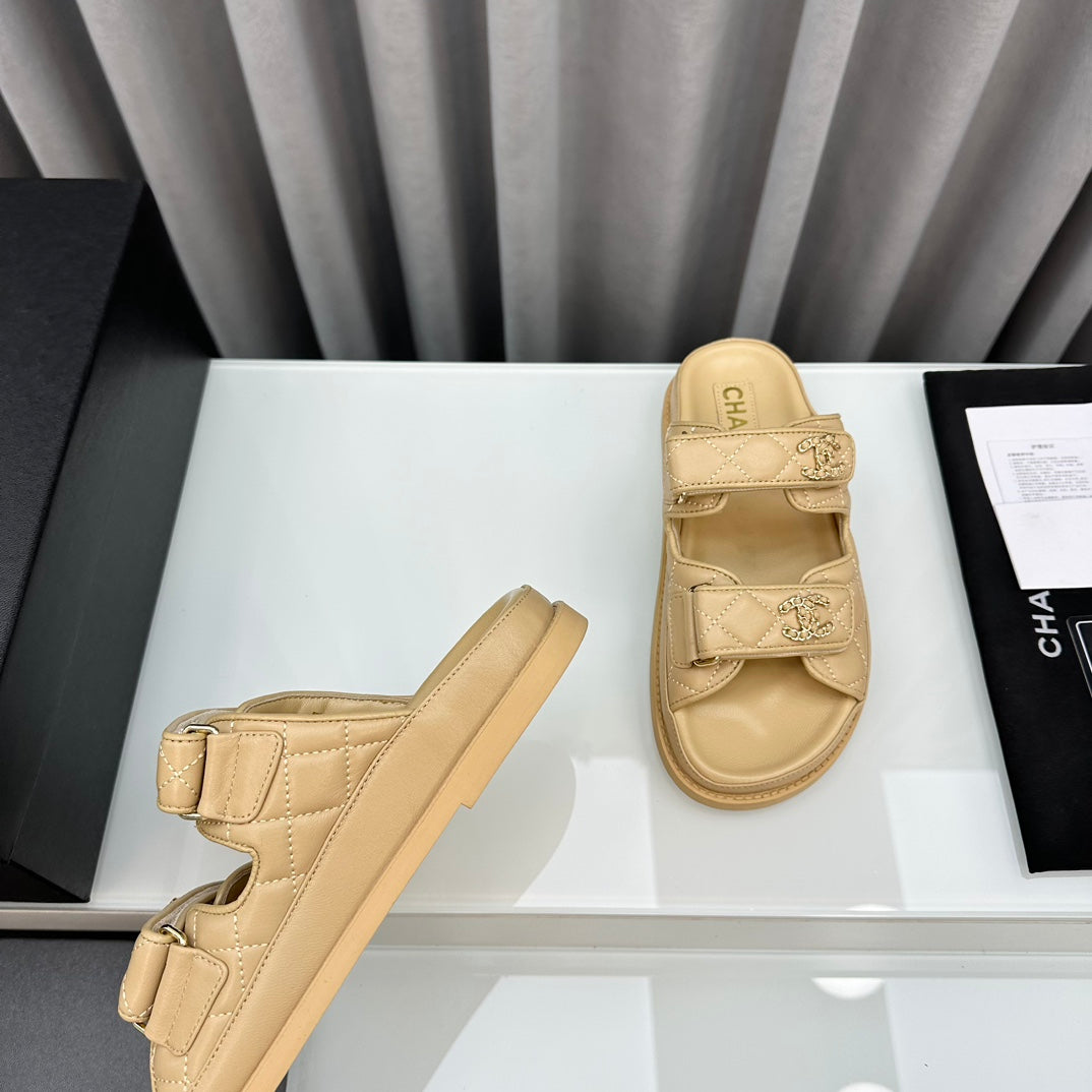 dad sandals beige lambskin mules