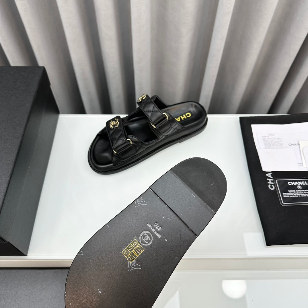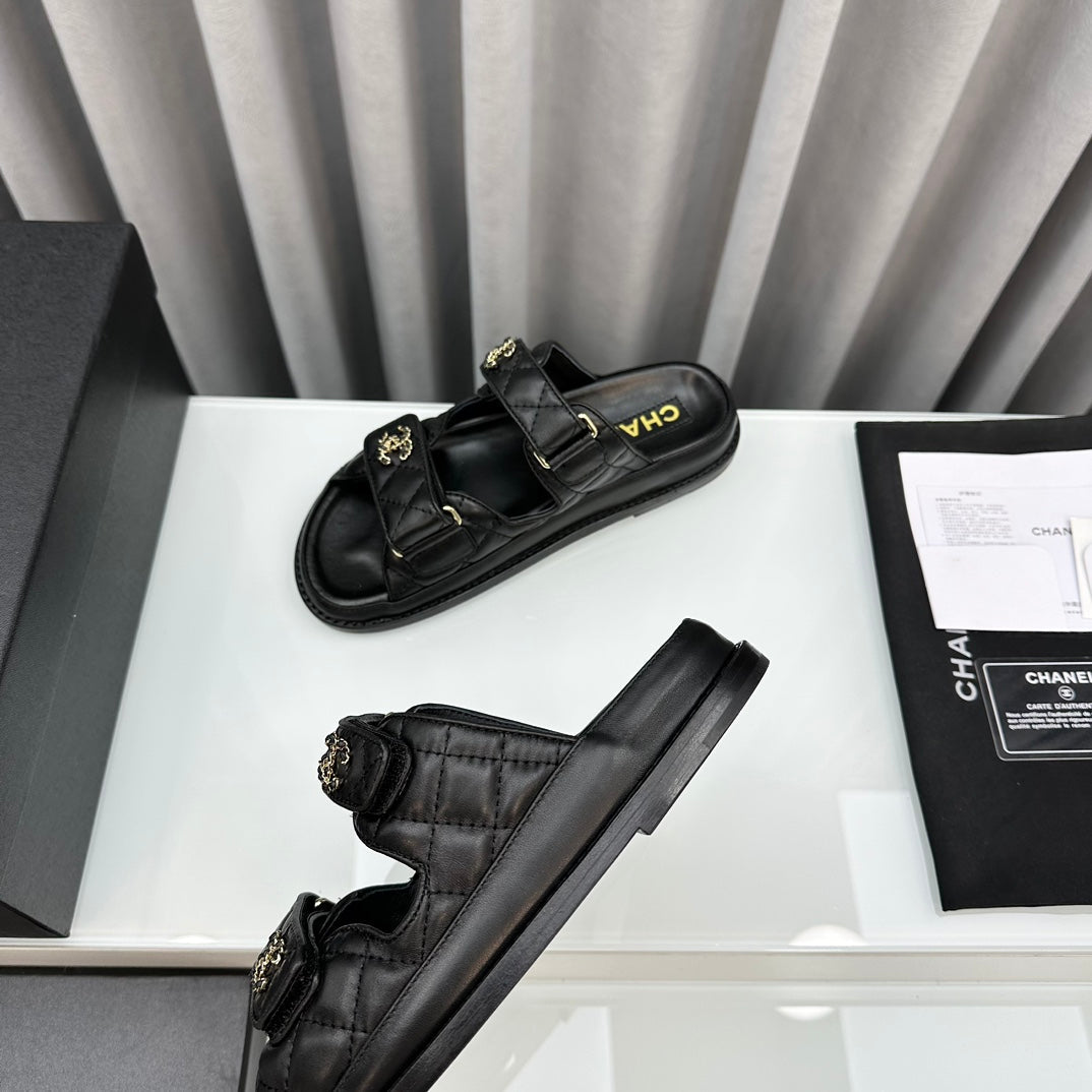 dad sandals black patent interwoven leather cc