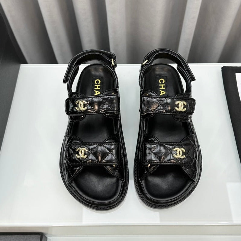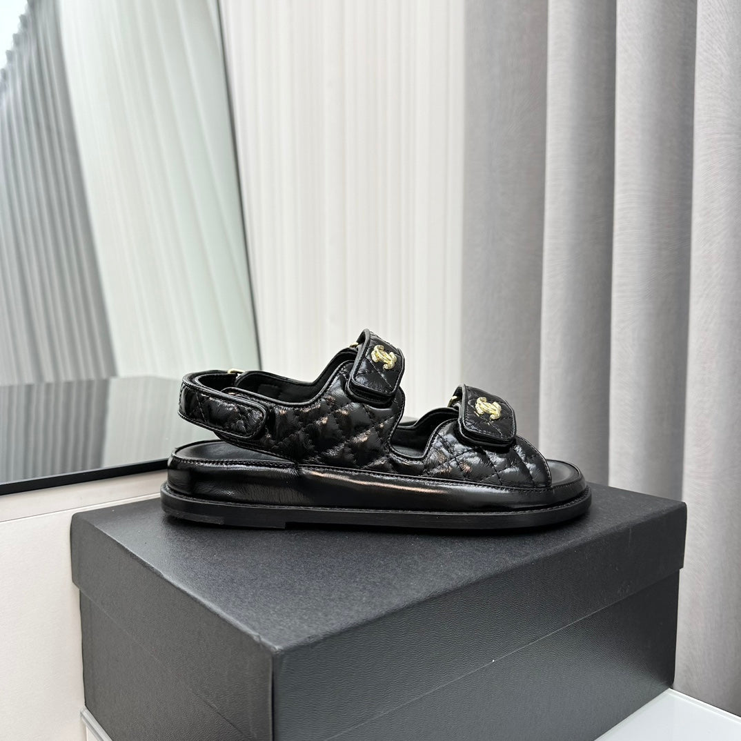 dad sandals black patent lambskin