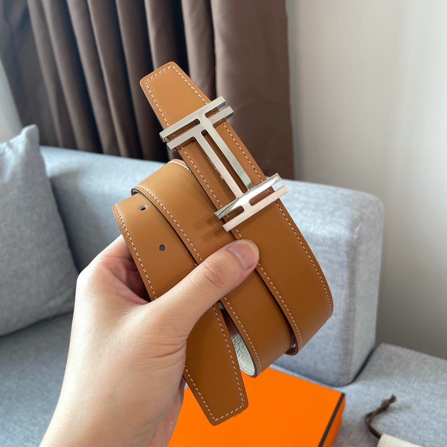 • H Buckle in permabrass plated metal.