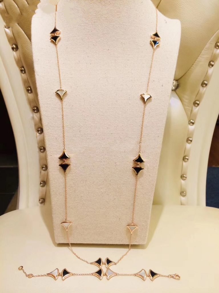 DREAM NECKLACE 16 MOTIF ONYX MOP PINK GOLD