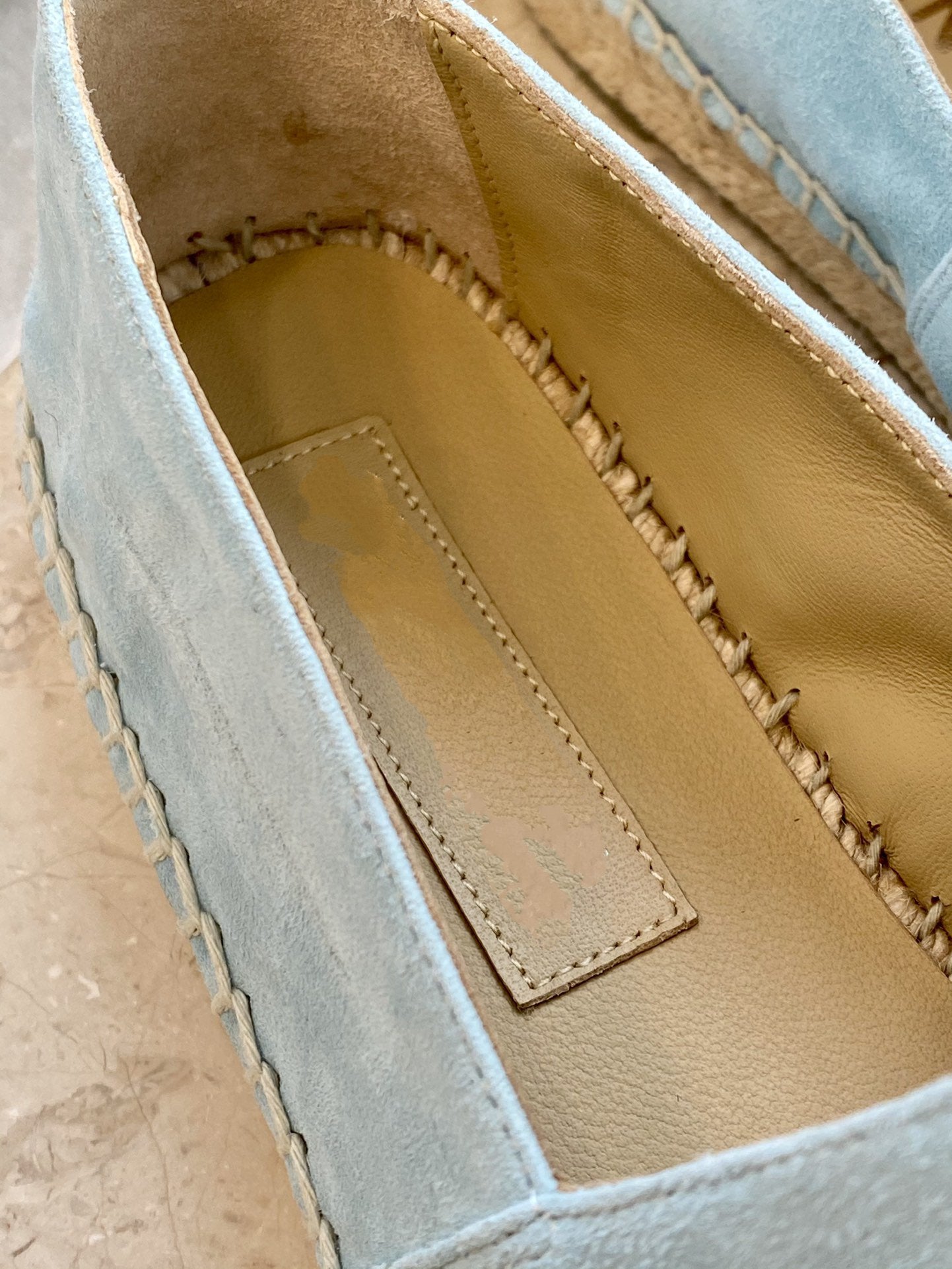 espadrilles cloud blue suede black lambskin