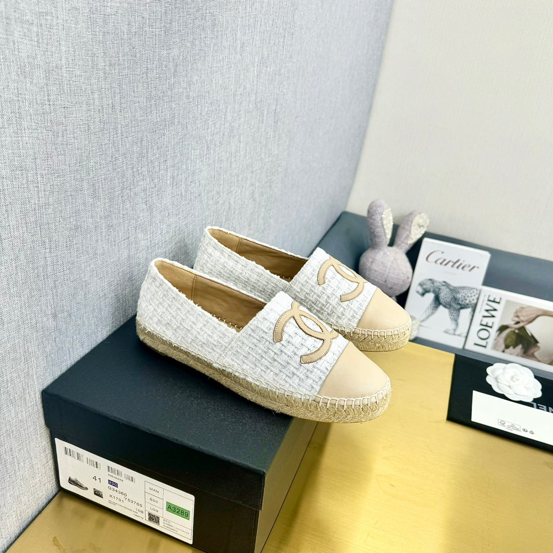 espadrilles white tweed light beige calfskin