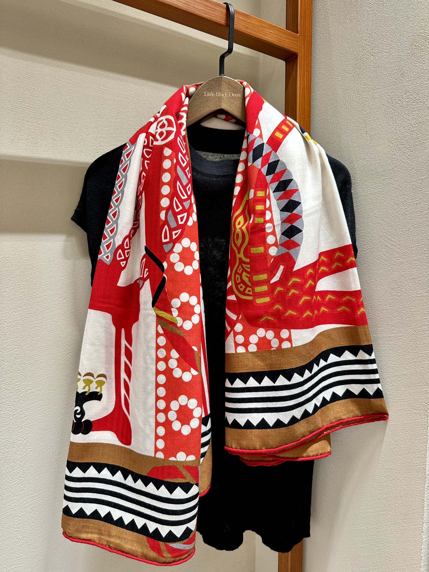 Fantaisie d'Etriers Scarf 140 CM Red Colorful Silk