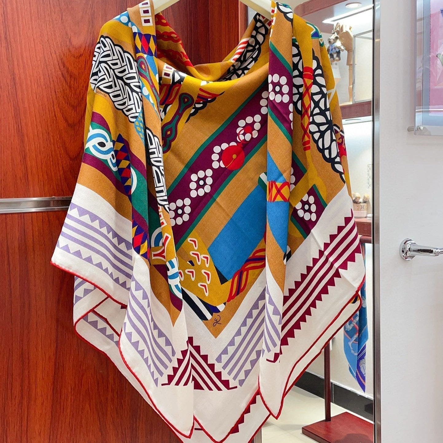 Fantaisie d'Etriers Shawl 135 CM Dark Yellow Colorful Cashmere And Silk 402080