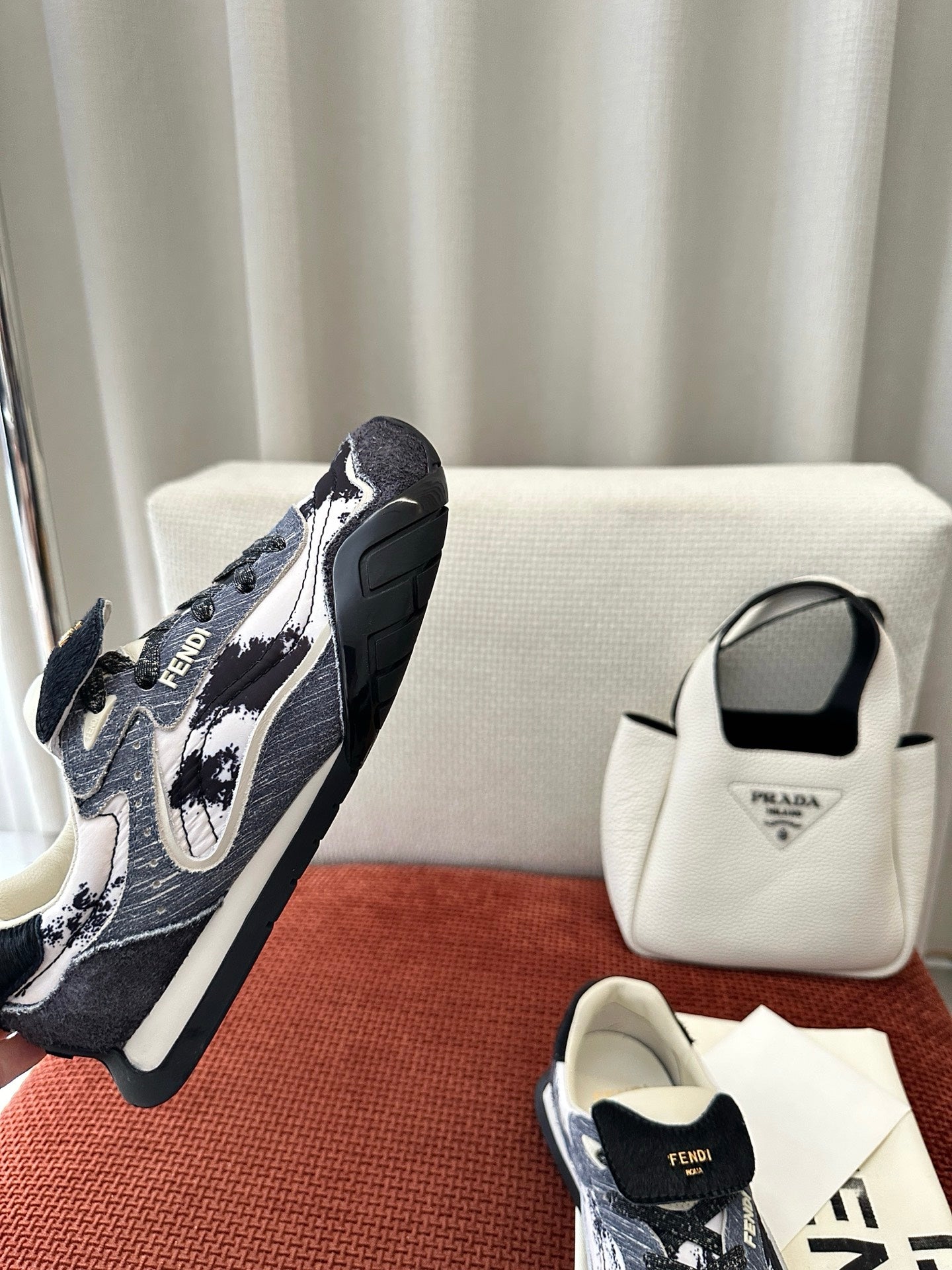 Fendi 2025 Wave Pulse Sneaker Black Gray Suede Cowhide 562136