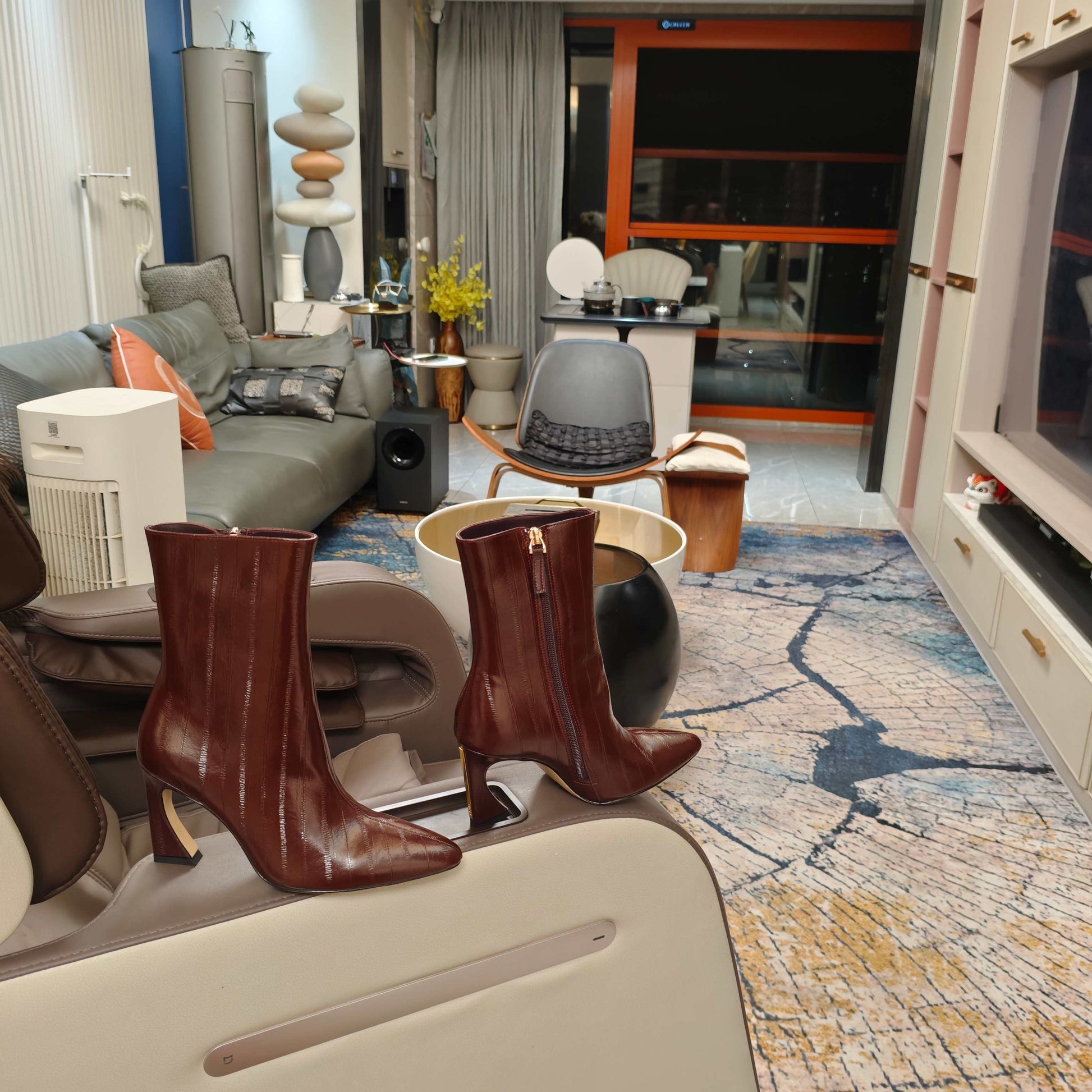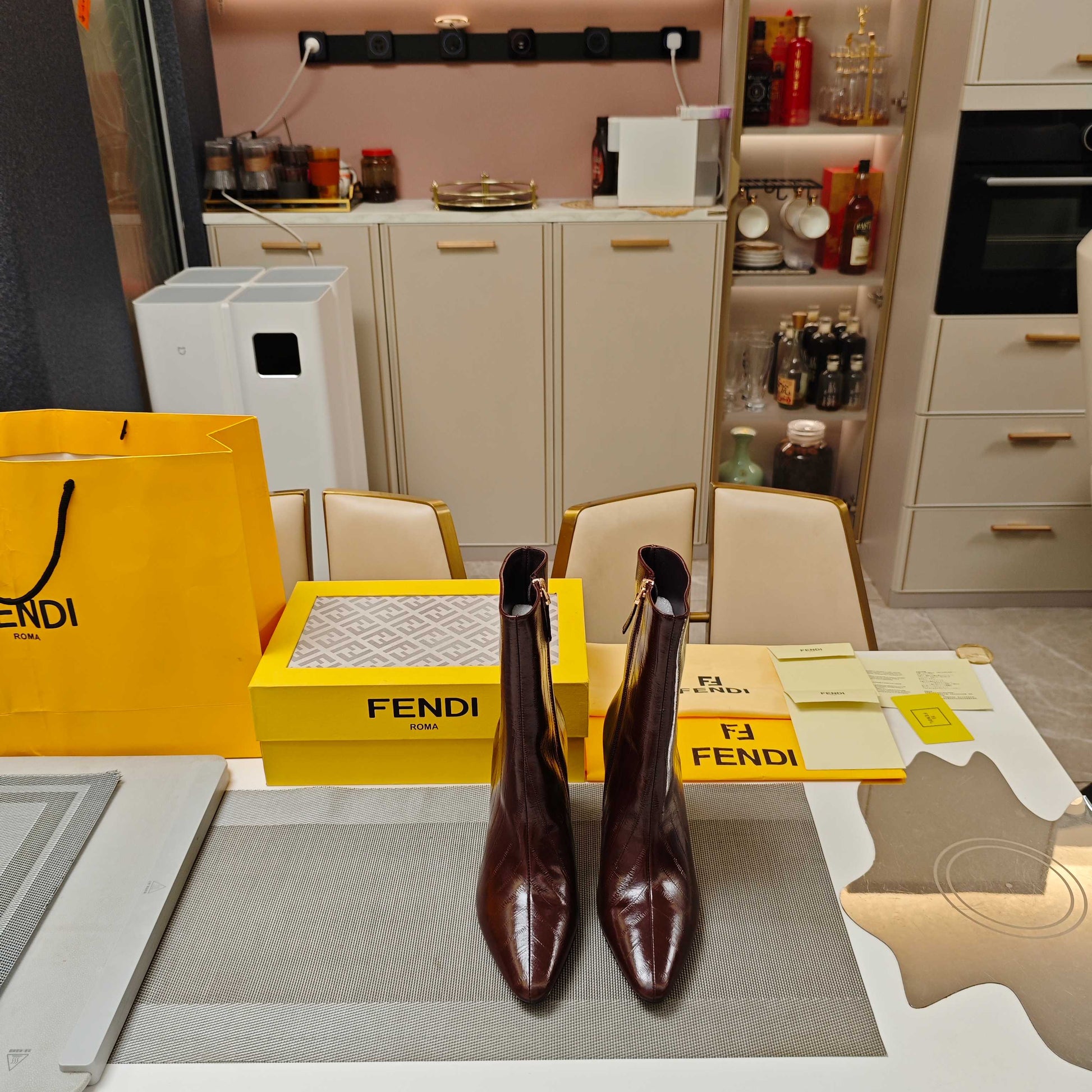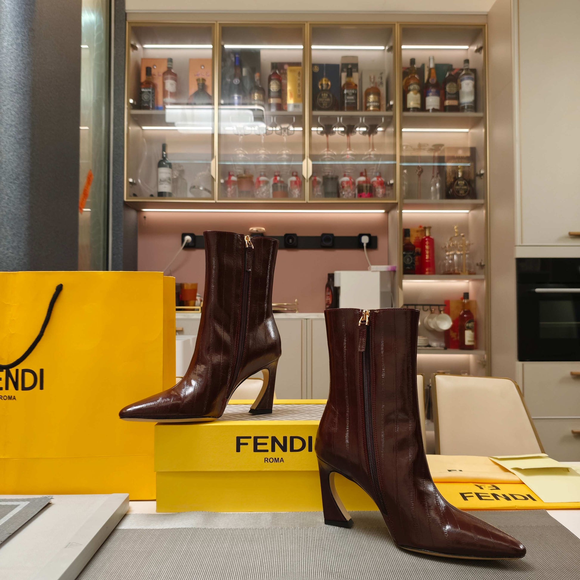Fendi 25ss high-heeled boots burgundy sheepskin 502715