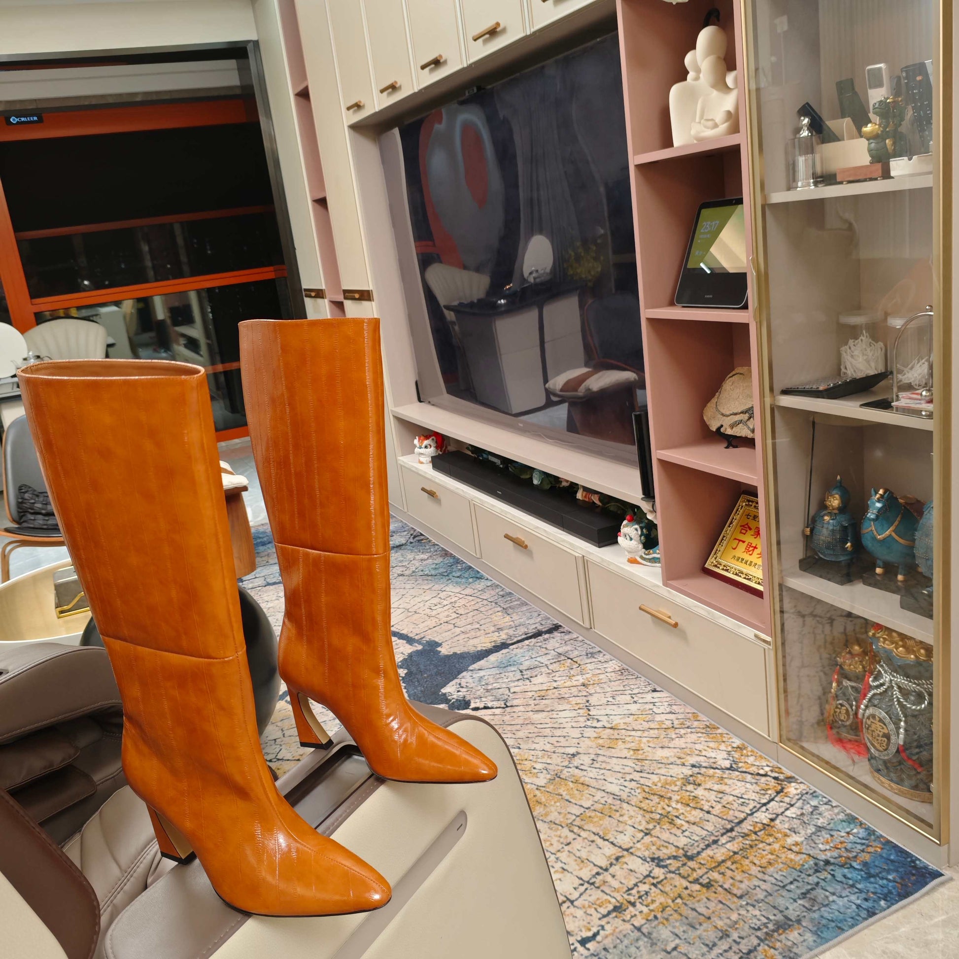 Fendi 25ss high-heeled boots caramel brown sheepskin 502720