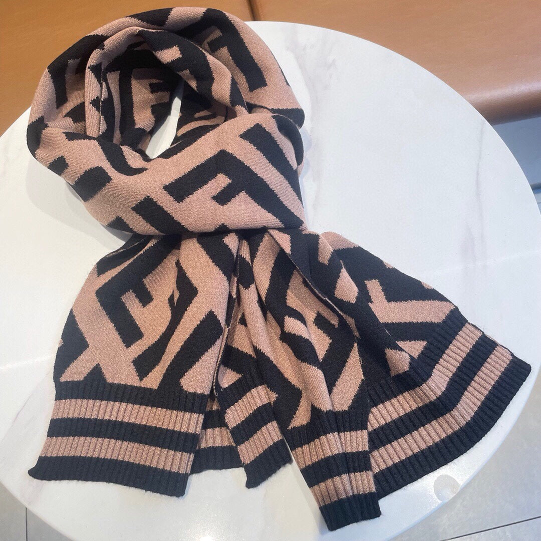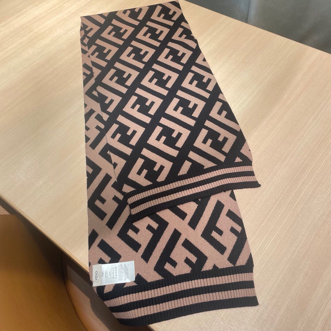 FF 180 SCARF IN BROWN MIX BLACK CASHMERE AND WOOL