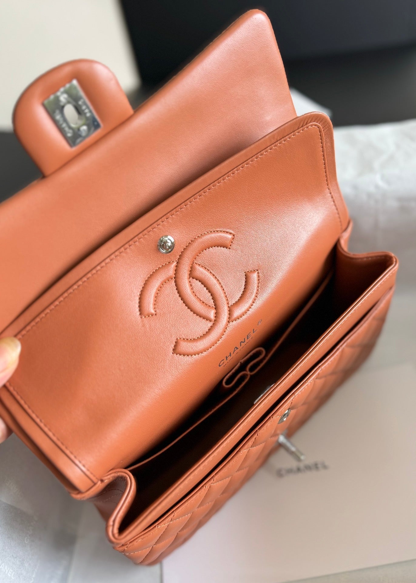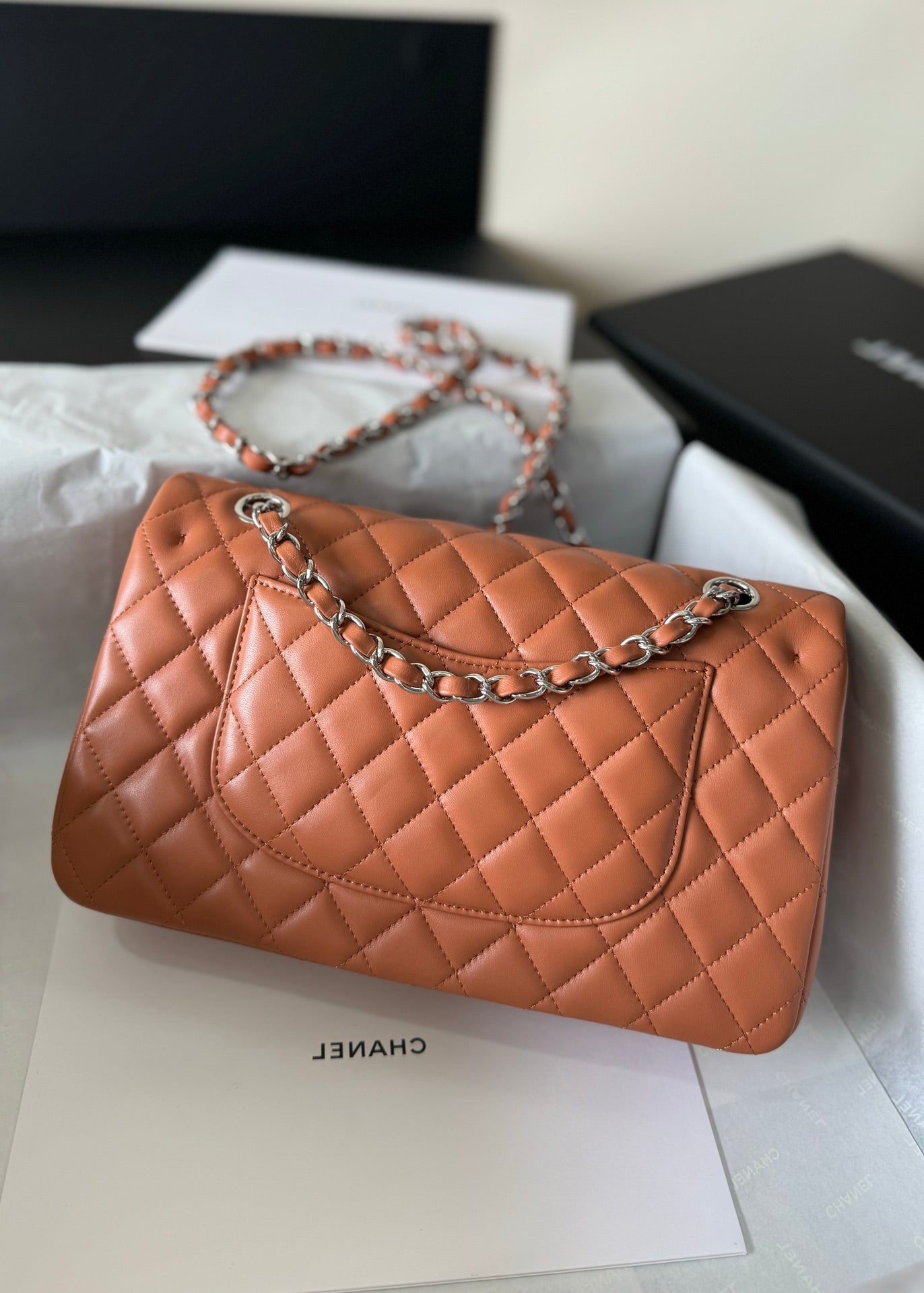 flap bag medium 25 brown lambskin silver hardware