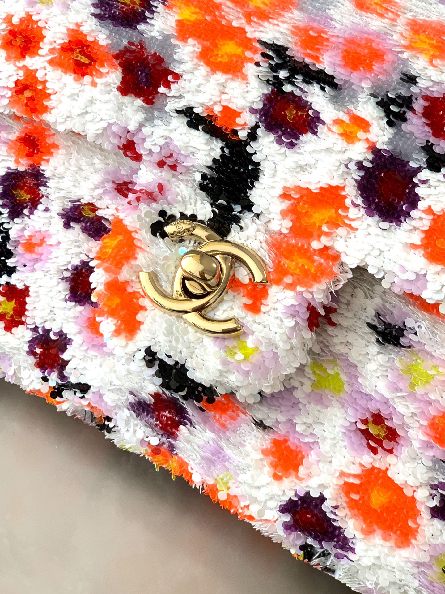 Flap Bag Mini 20cm White Orange Sequin