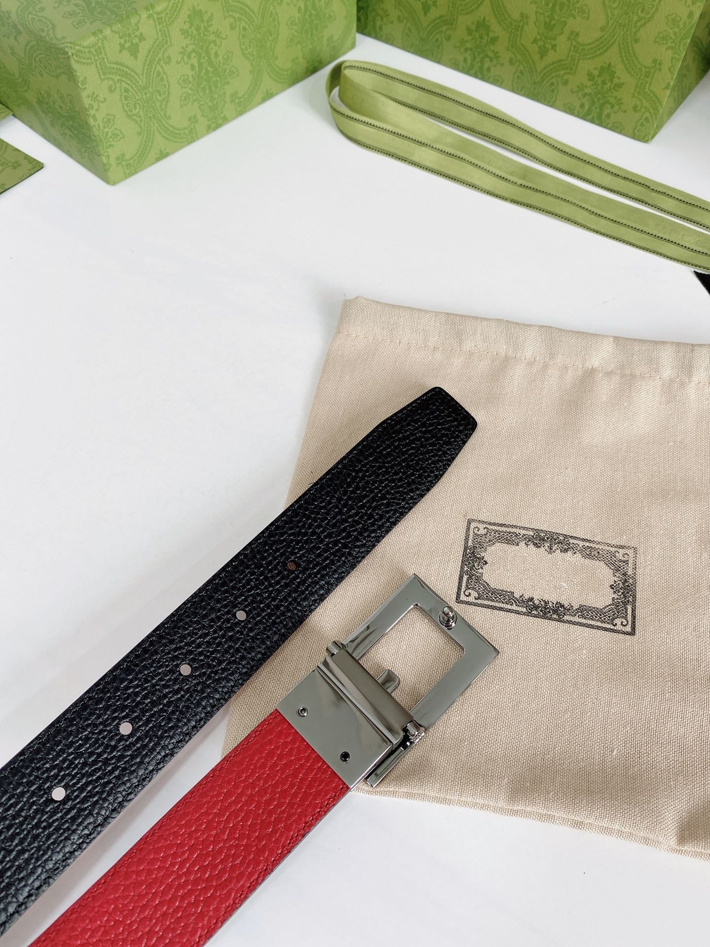G BELT SILVER BUCKLE RED BLACK LEATHER 3.5CM