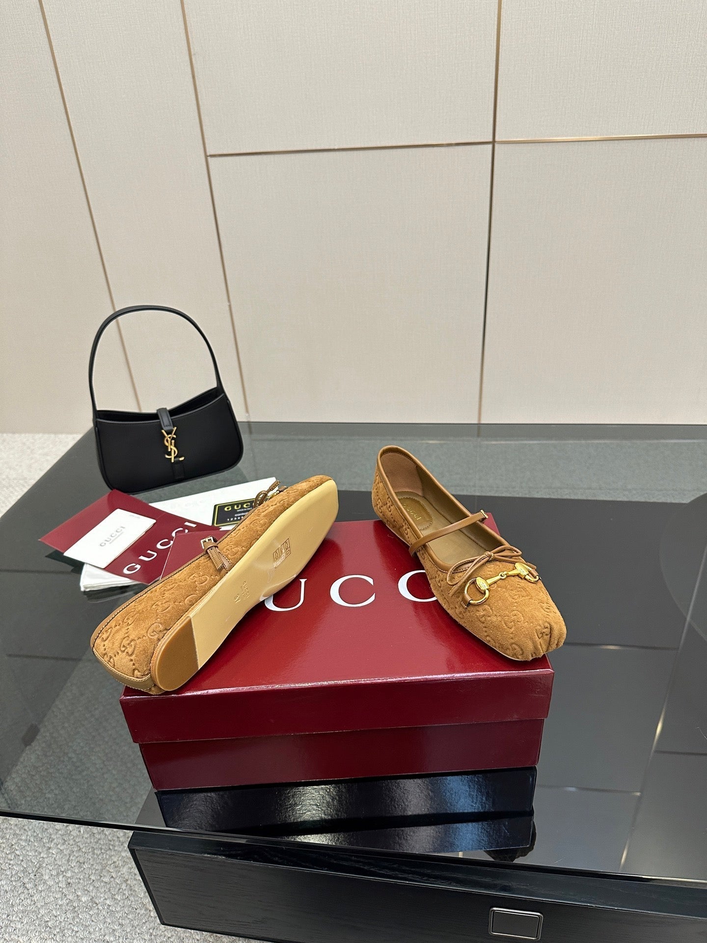 GC 25 Horsebit Ballet Flat Brown Monogram Suede
