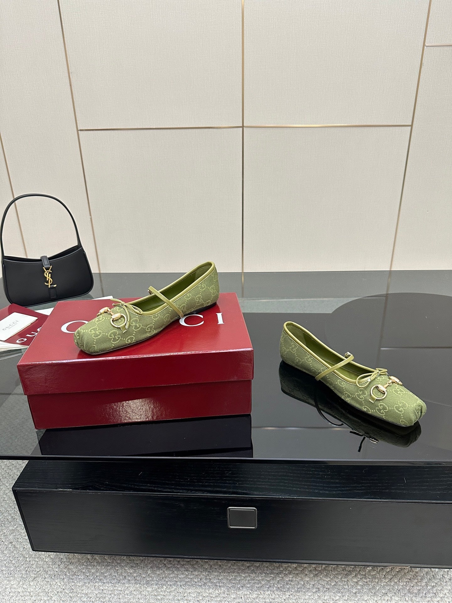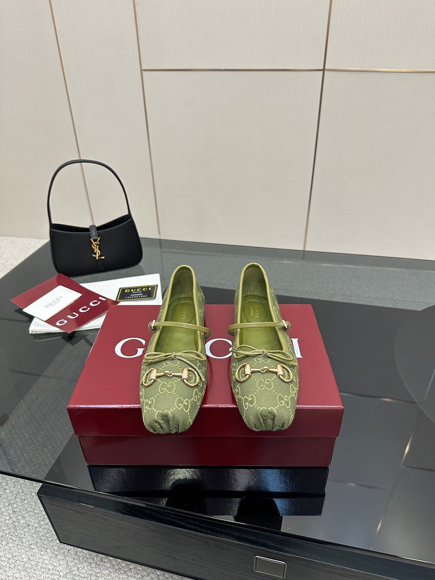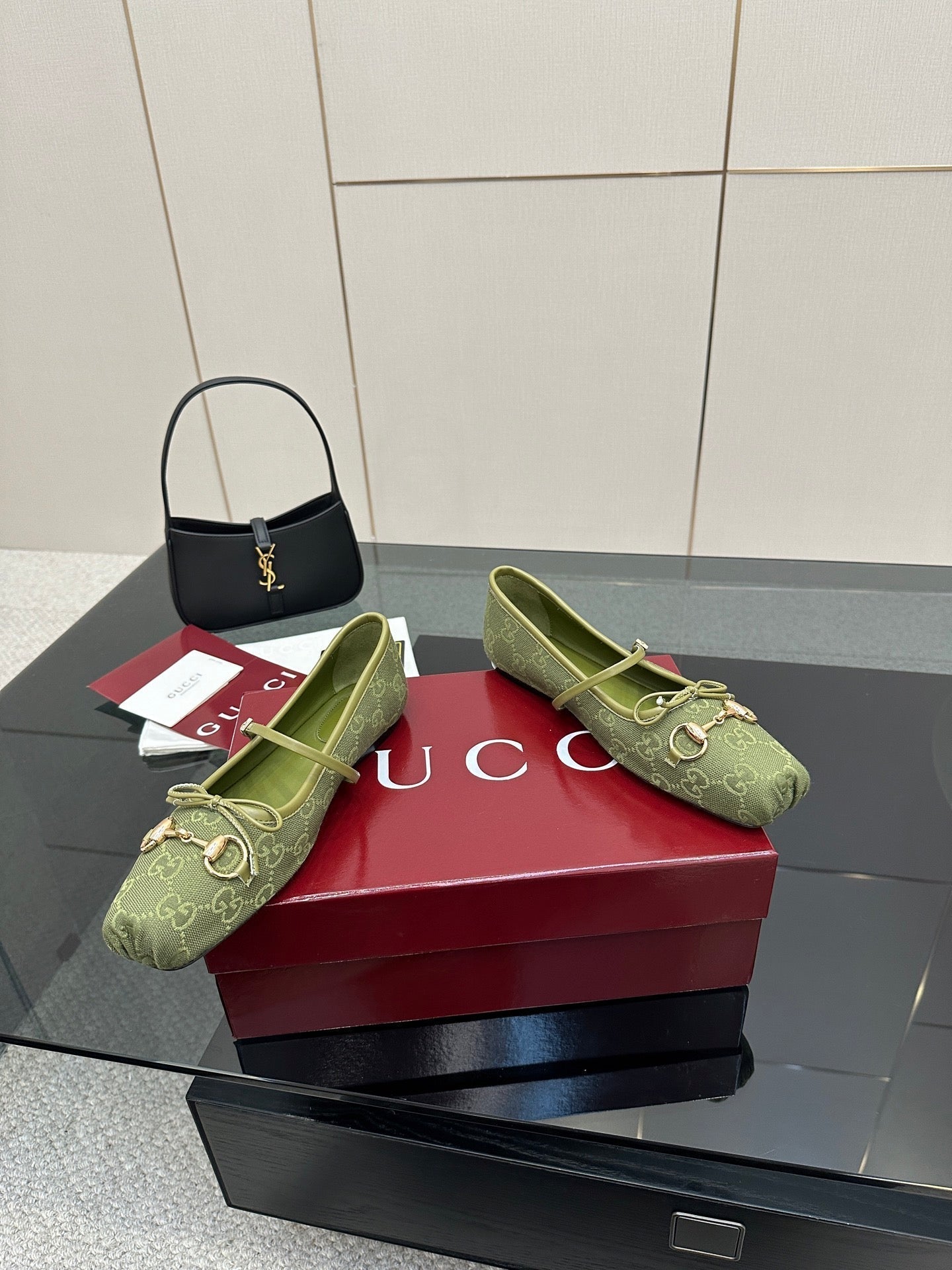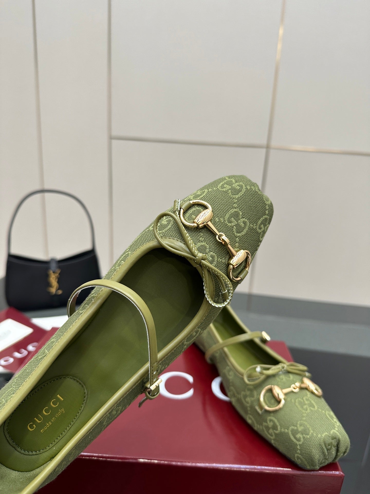 GC 25 Horsebit Ballet Flat Green Monogram Canvas