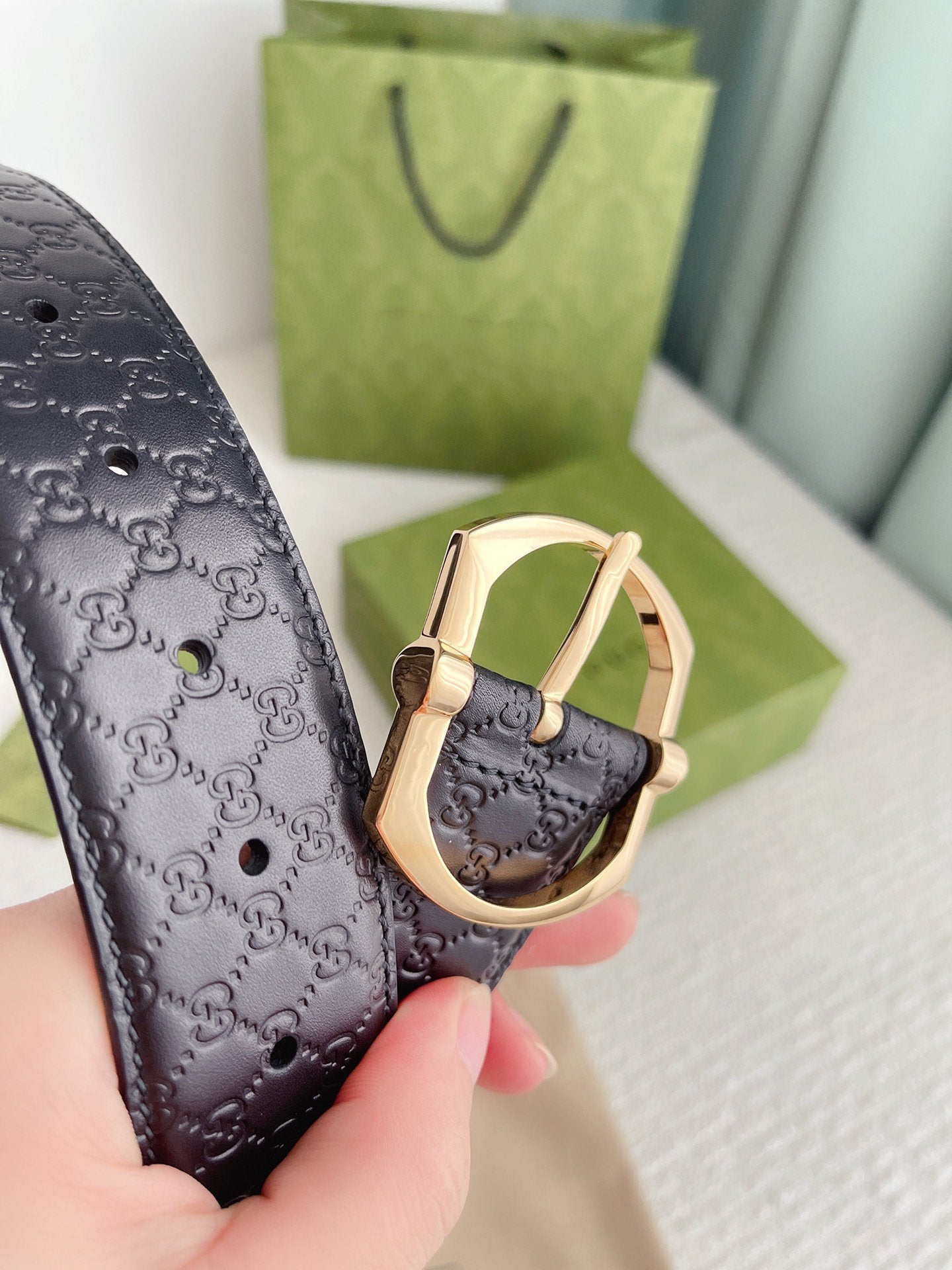 GC BELT GOLD BUCKLE IN GG SINK LEATHER 4.0CM