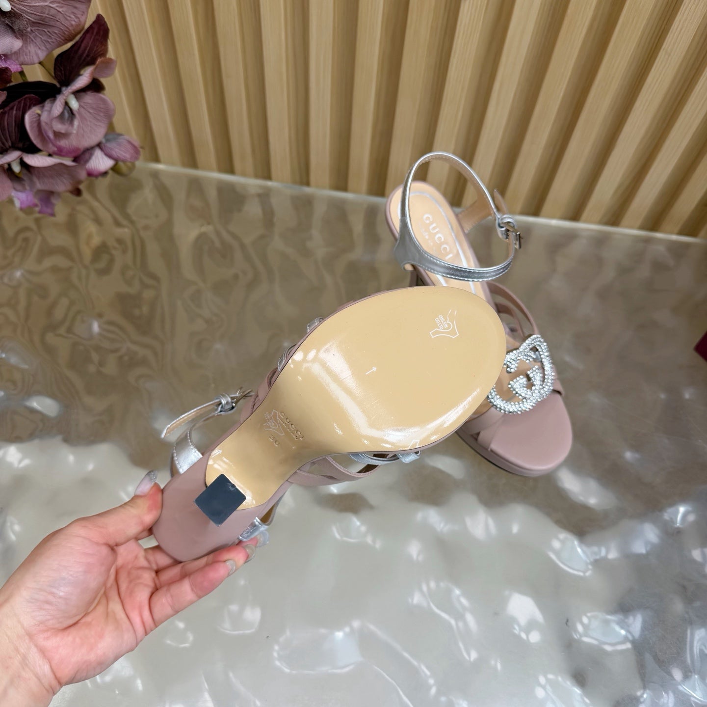 GG 26 High-Heeled Platform Sandals 105 Blush Pink Cowhide 589497