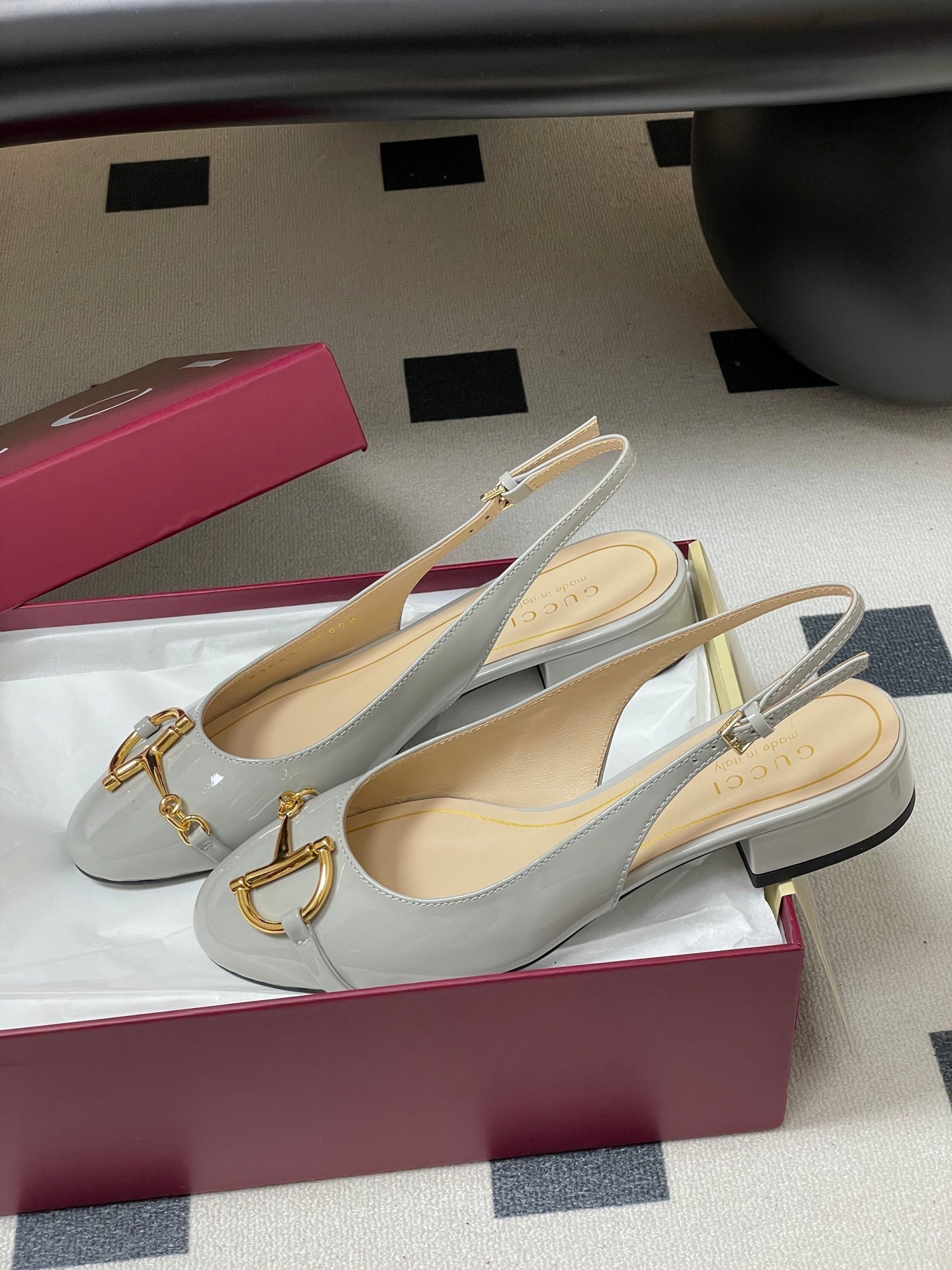 GG 26ss Big D Half HorseBit Mary Jane Light Gray Patent Leather 593504