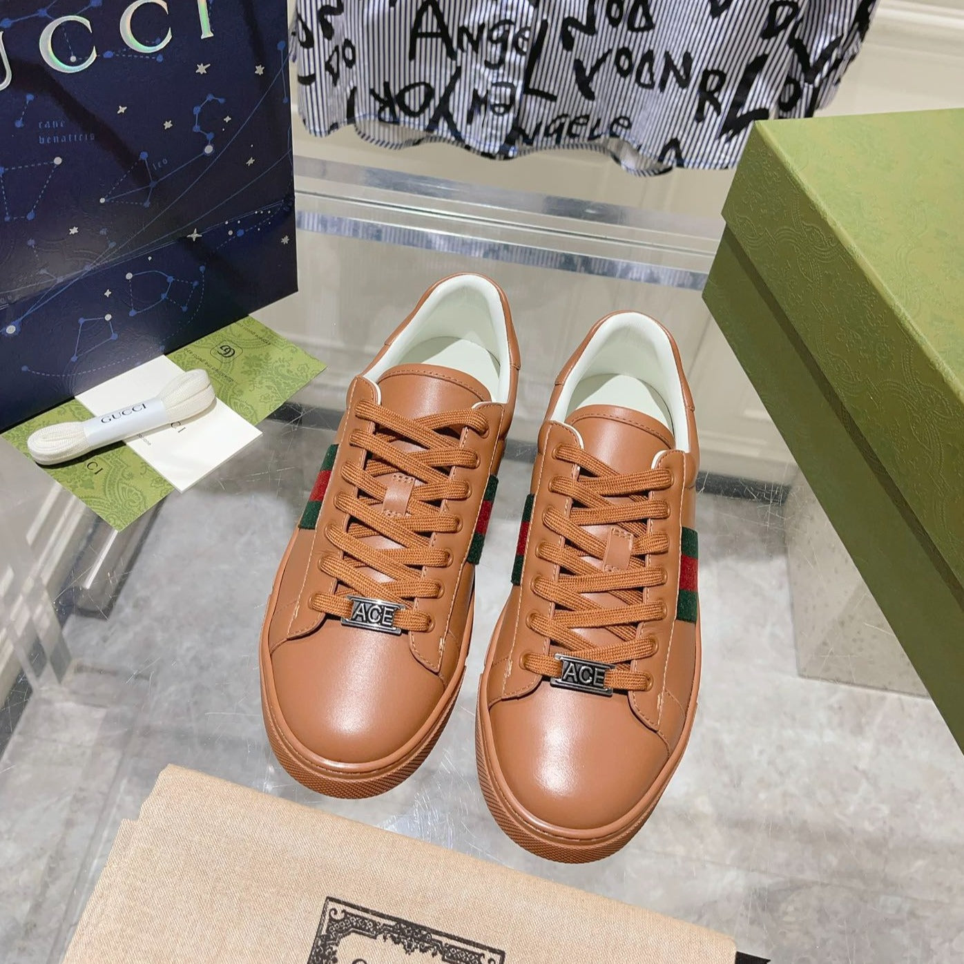 GG ACE GG SUPREME TRAINER TAWNY CALFSKIN