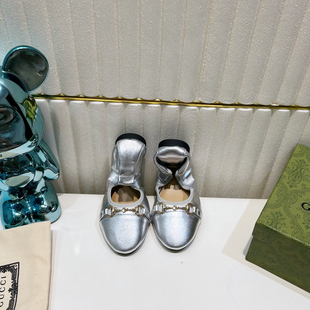 GG BALLET SUPER SLIM BUCKLE SILVER LAMBSKIN