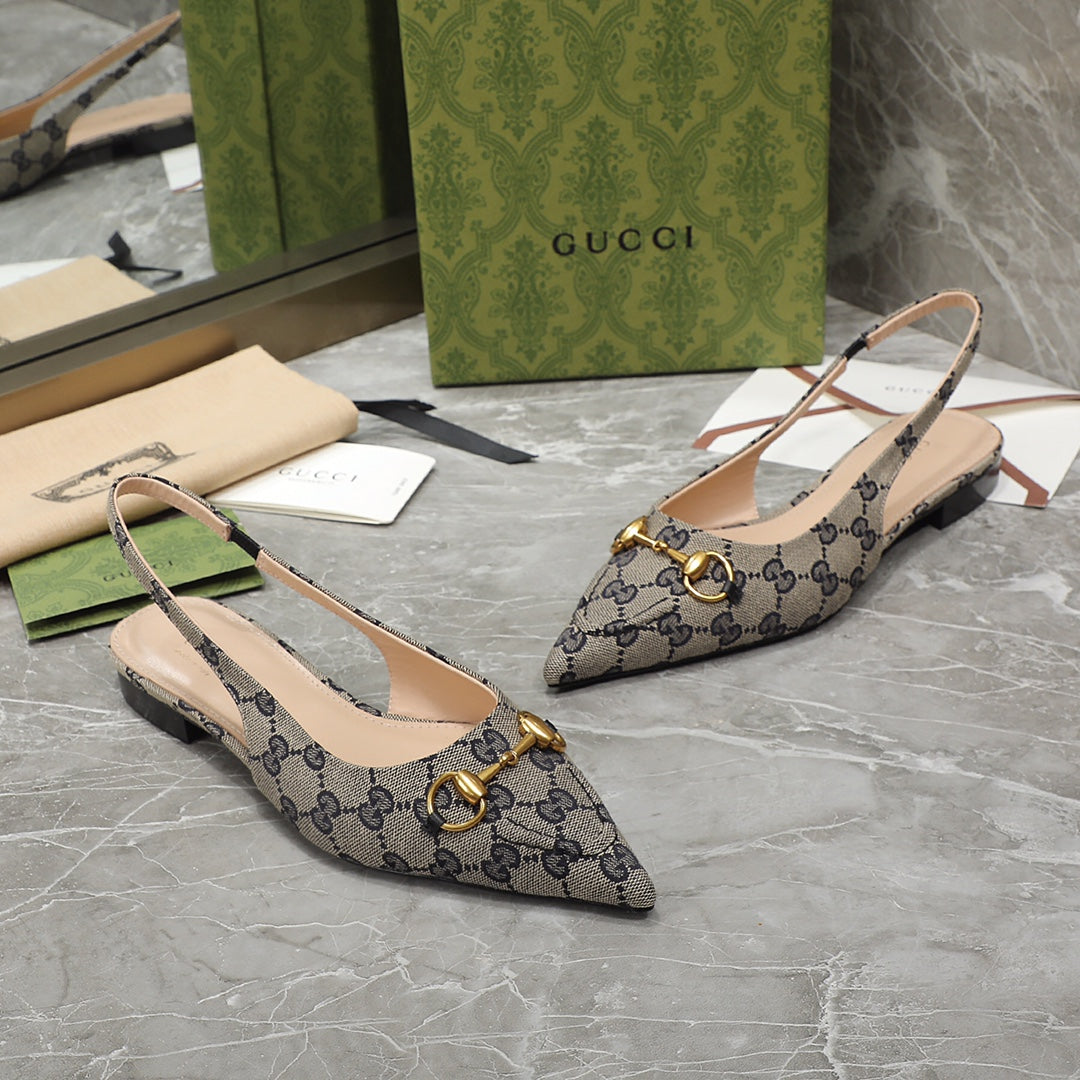 GG Slingback Flat Sandals Black Caro