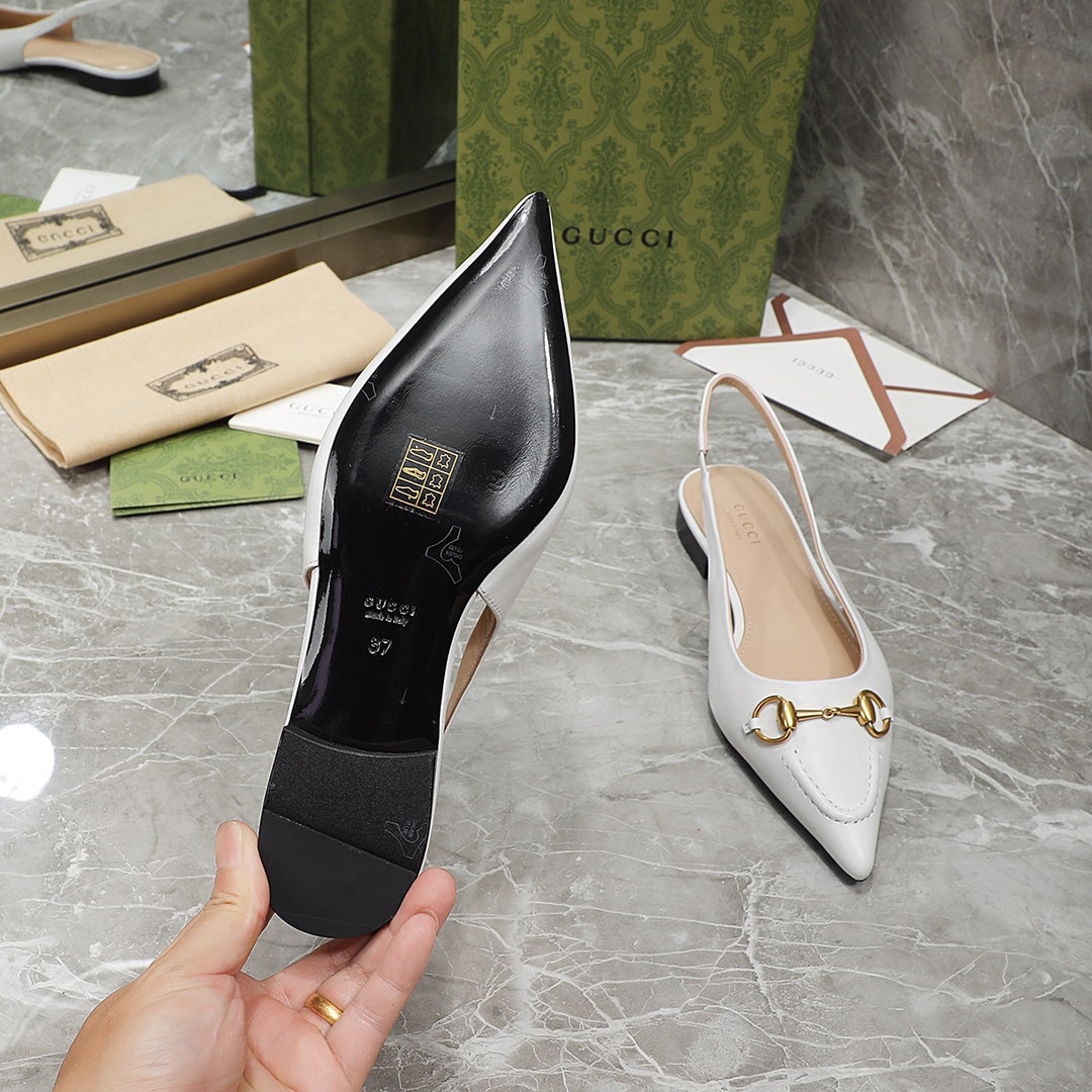 GG Slingback Flat Sandals white
