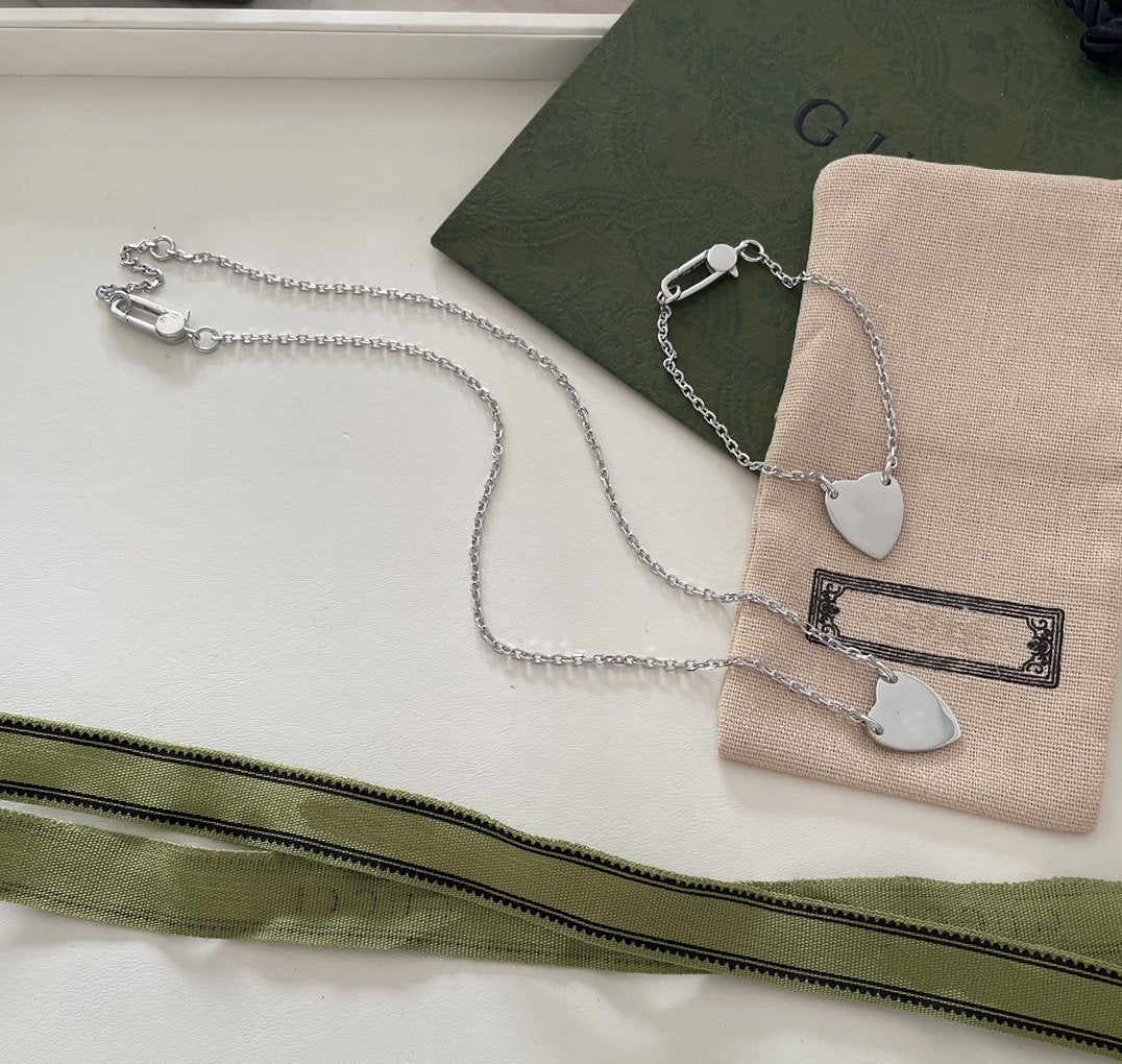 GG LOGO HEART-SHAPED PENDANT SILVER BRACELET