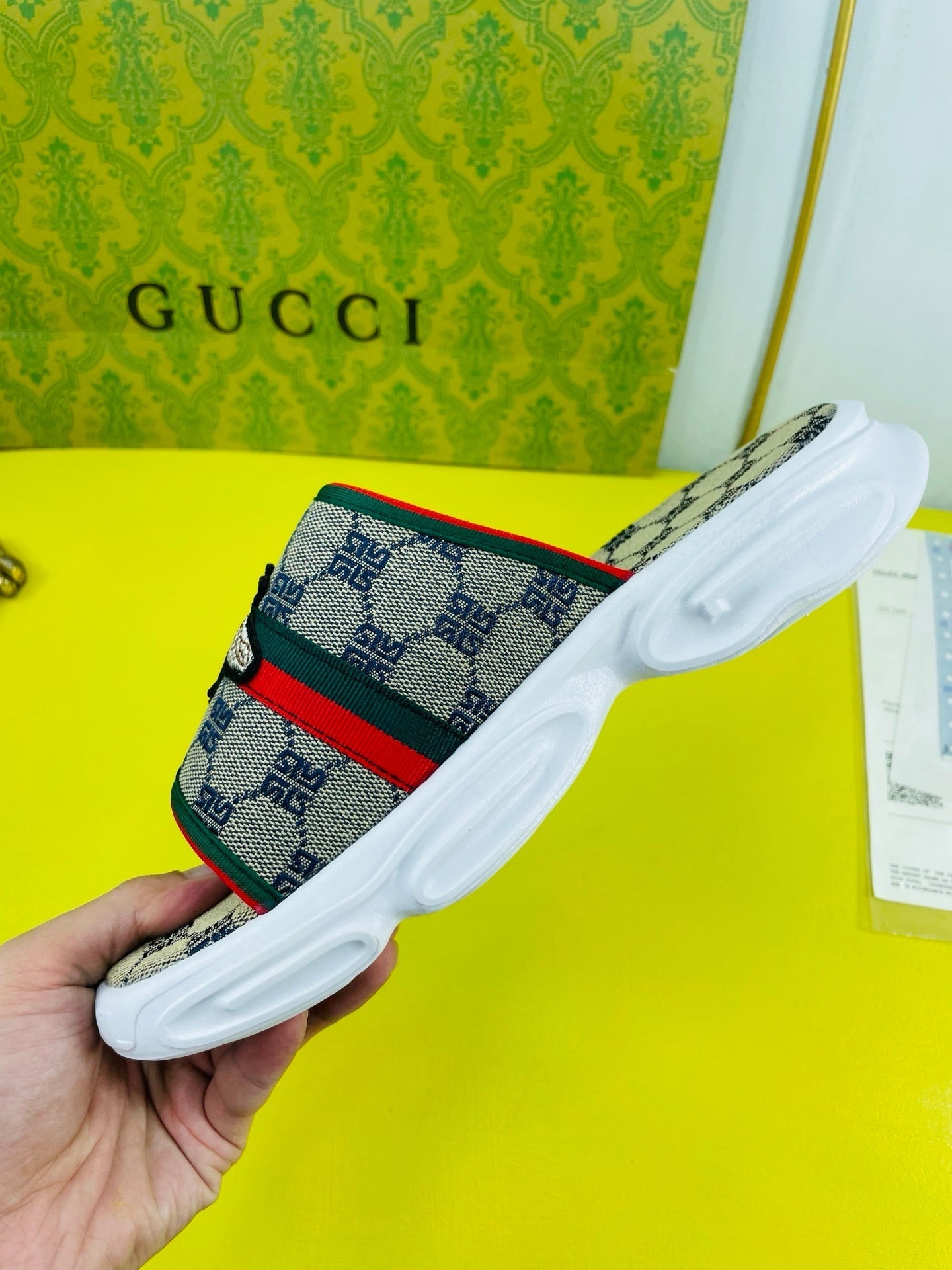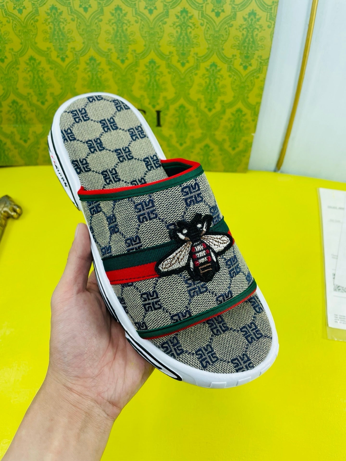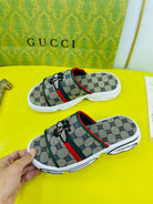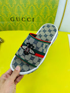 GG Men's Bee Slide Brown Gingham Fabric 538693