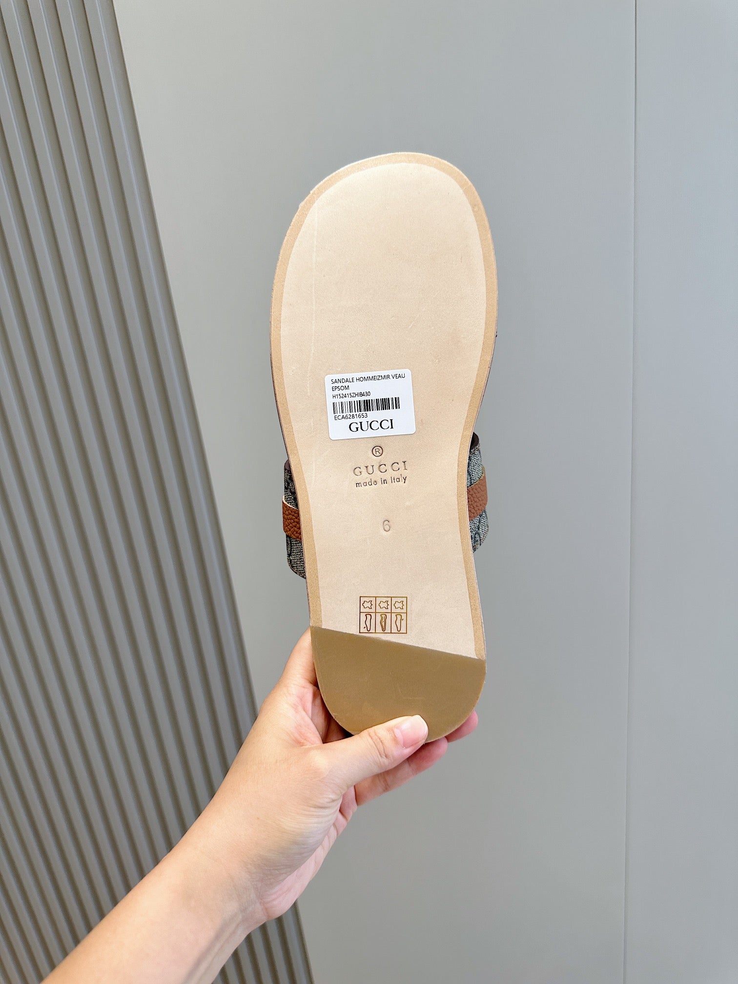 GG Men's Interlocking G Sandals Brown Cowhide 547645