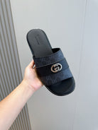 GG Men's Interlocking G Slides Black Cowhide 547642