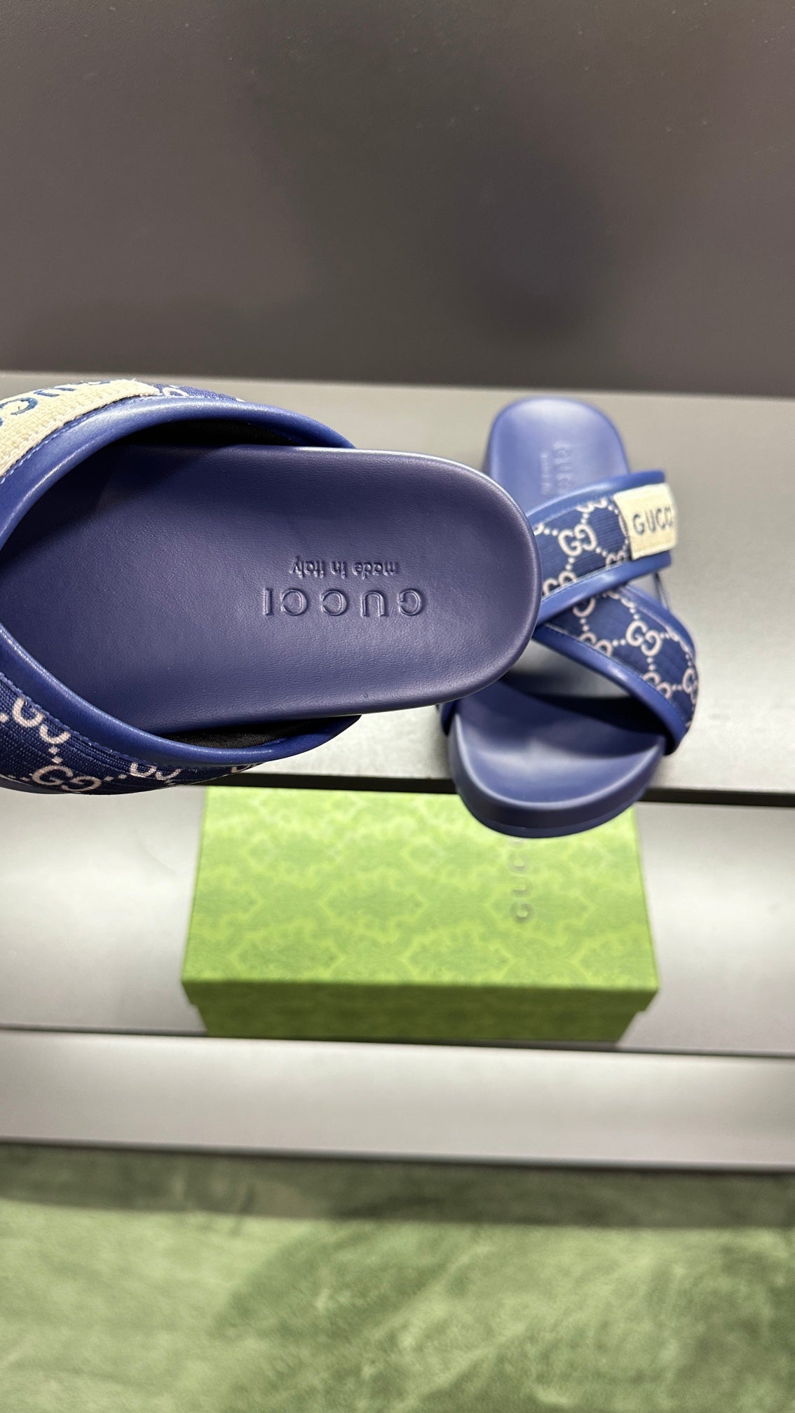 GG Men's Sandals Blue Polyester Leather 547245