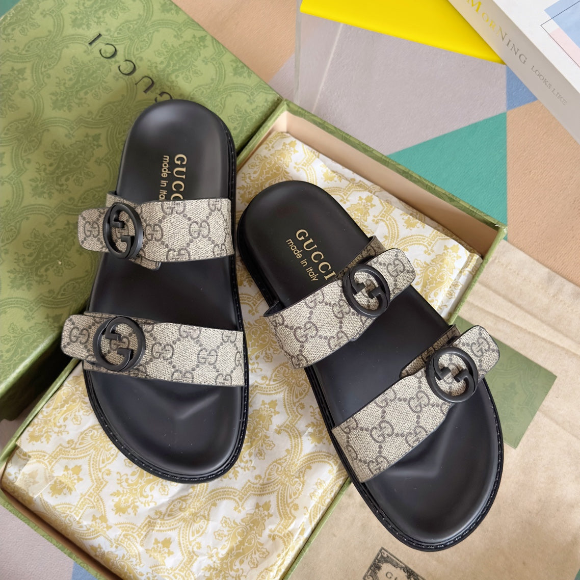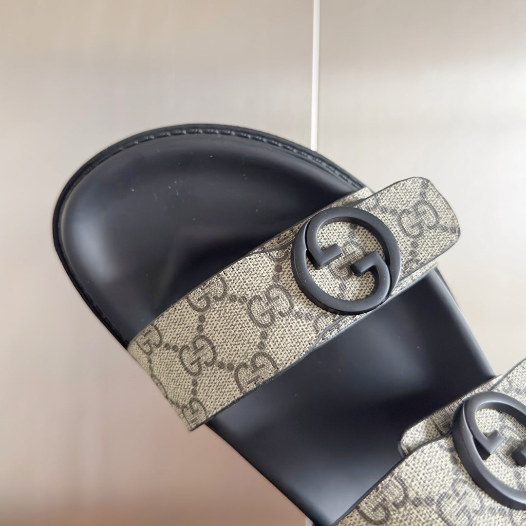 GG Men's Sandals Slide Brown Canvas 558134